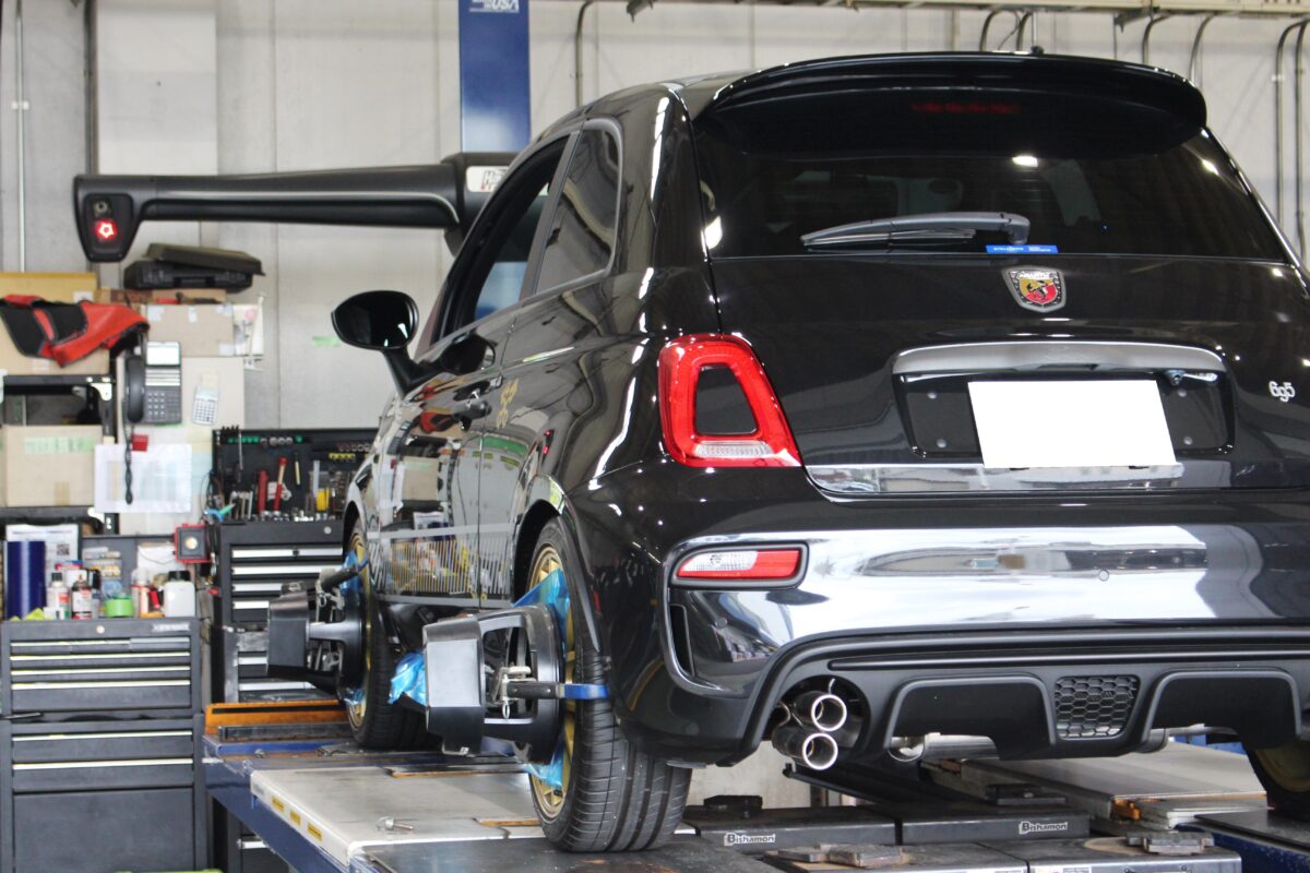 アバルト500系のカスタムで多くご相談いただくのが「リア上がりの解消」です。