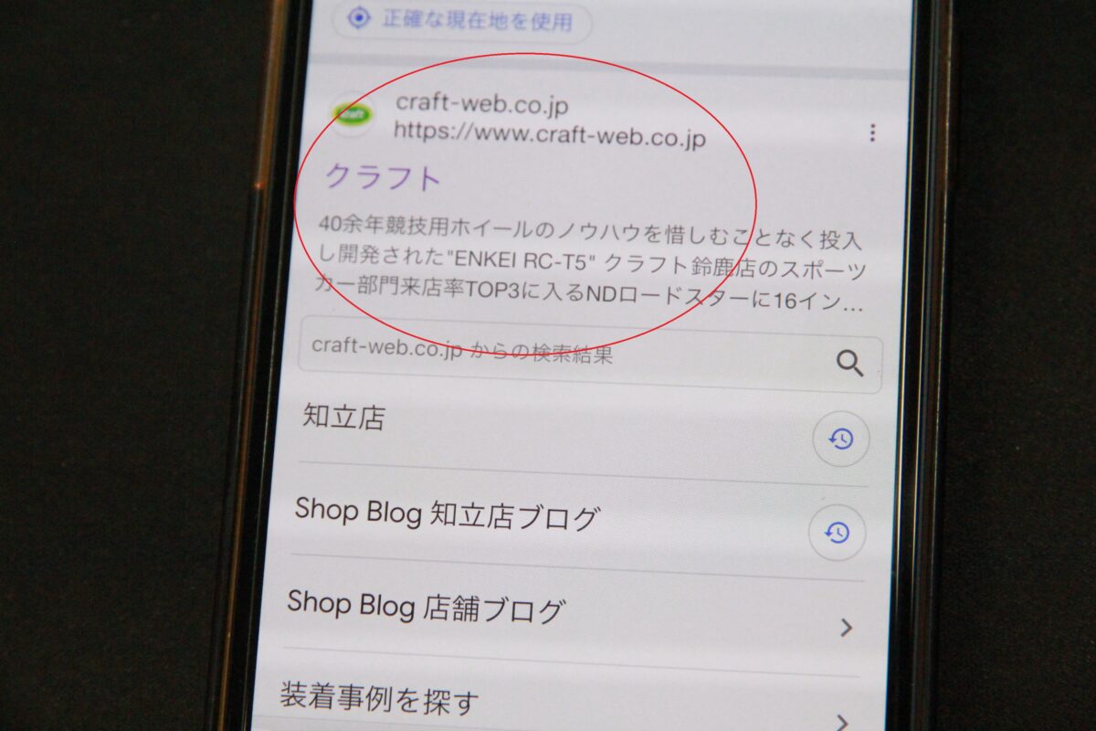 スマートフォンからクラフトのホームページを検索して