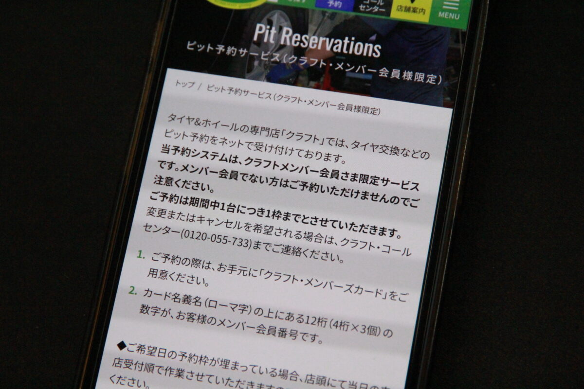 これはクラフトメンバー様限定で出来るネットの作業予約です。