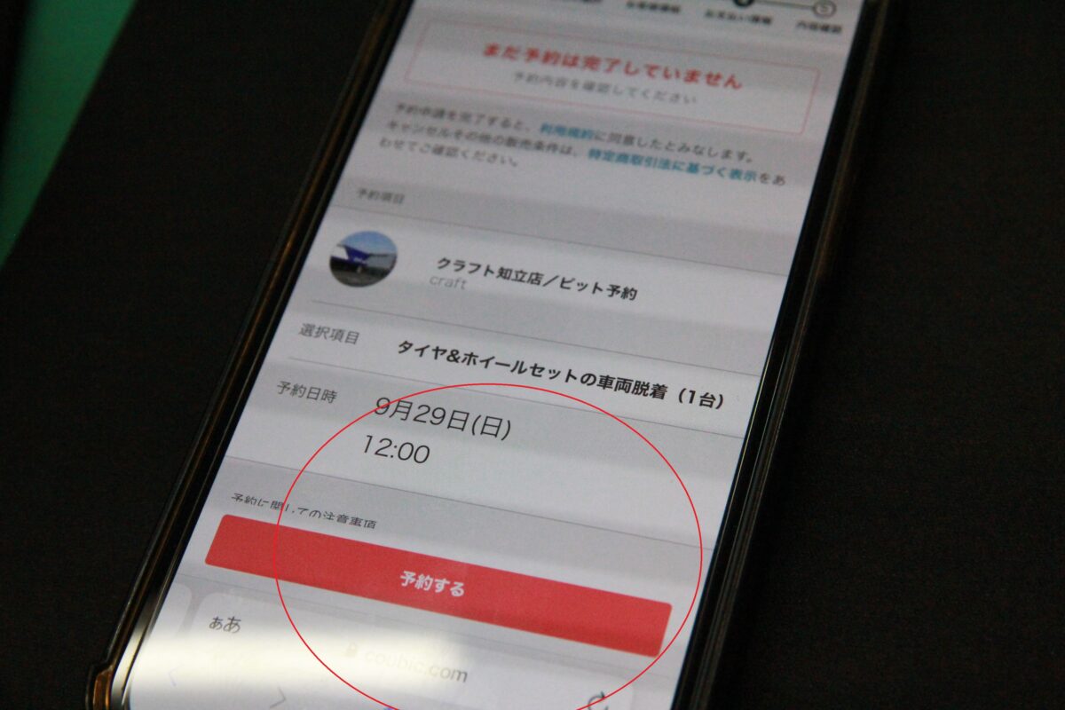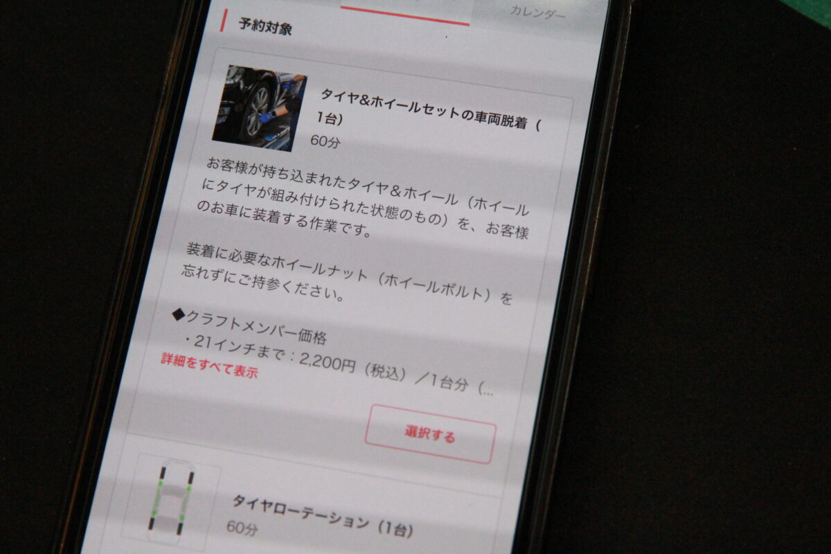 予約対象に【タイヤ&ホイールセットの車両脱着】があります。