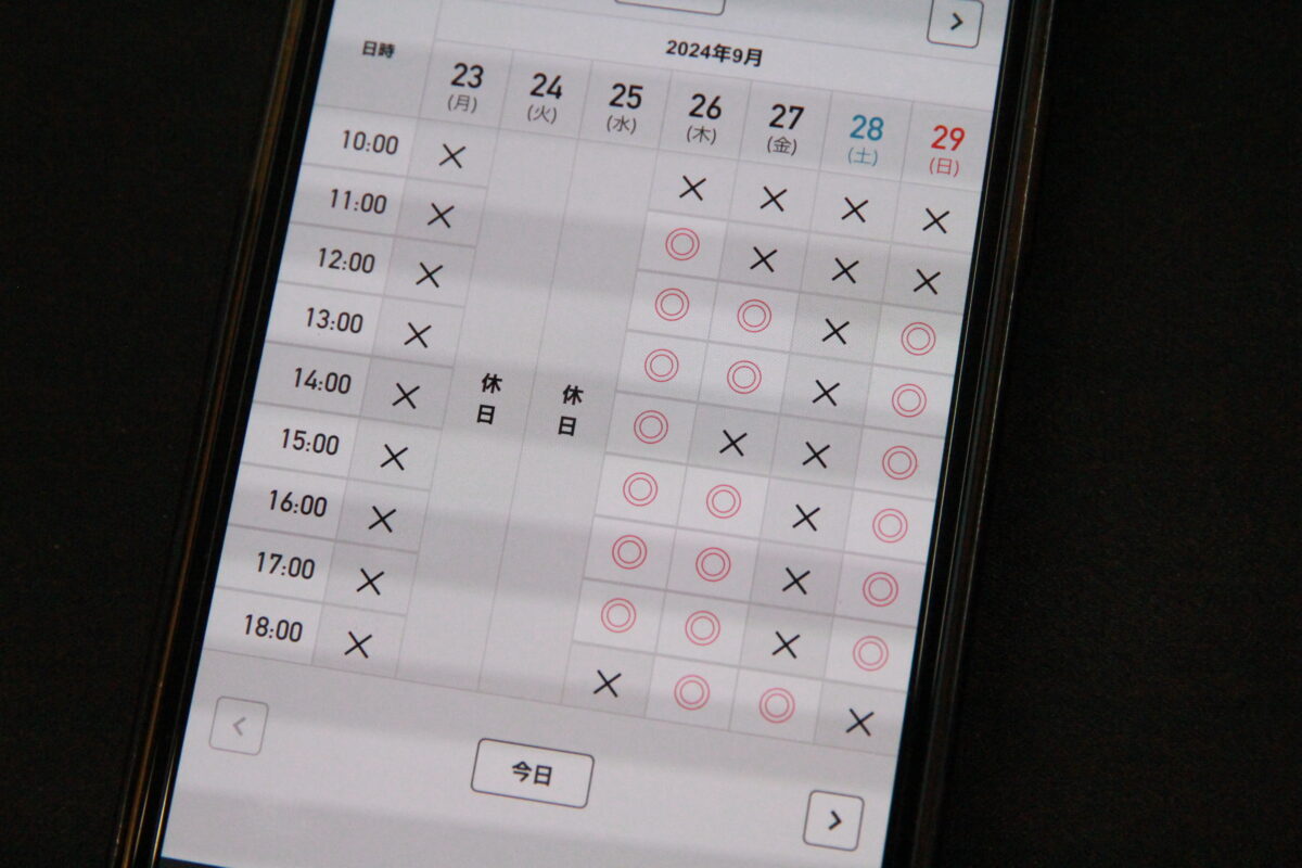 ✕になっている時間は既に他のお客様の予約が入っているのを表しています。