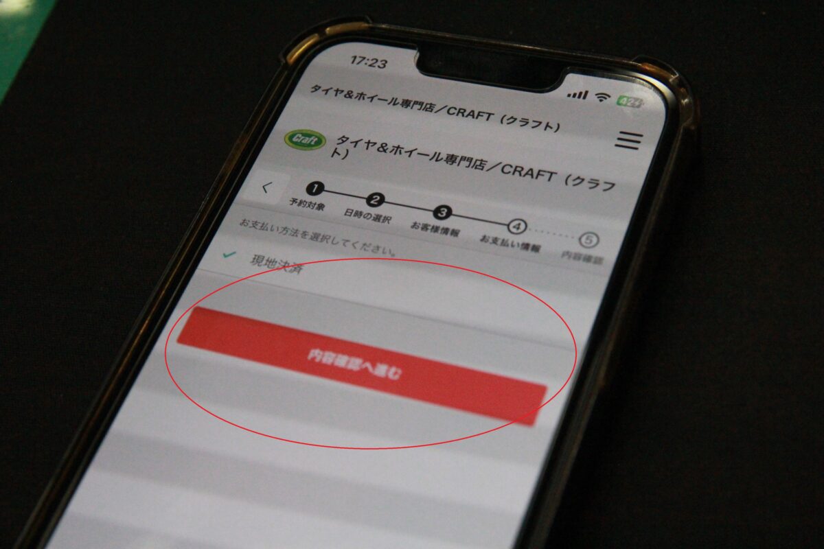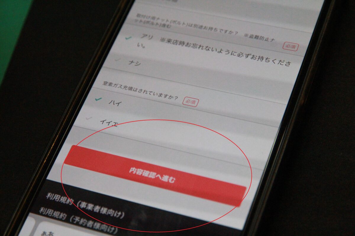 この画面になったら赤い〇の部分の「内容確認へ進む」をタップして下さい
