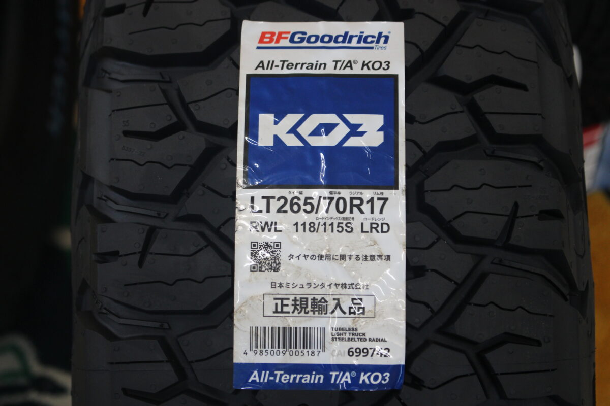 こちらのオールテレーンT/A KO3ですが、265/70R17でしたら1台分に限り店頭に在庫がございます!!