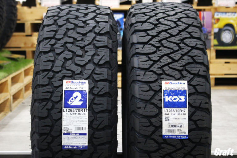 KO2・KO3ではショルダー部のトレッドブロックの形状も少し変わりましたね。