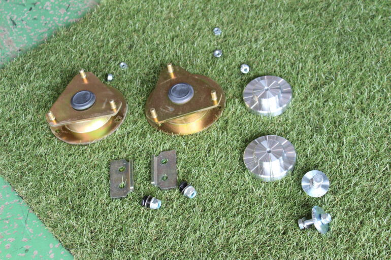 純正アッパーマウント上部にスペーサーを取付けシンプルなリフトアップが可能。
