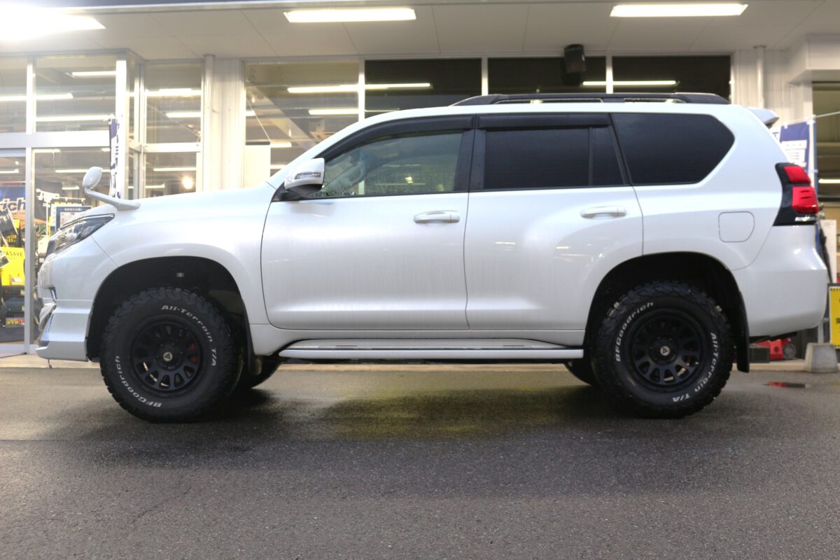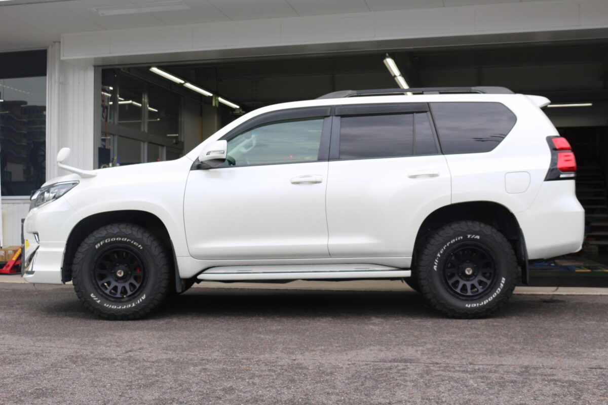 純正だと少し前下がり気味の150系プラド。