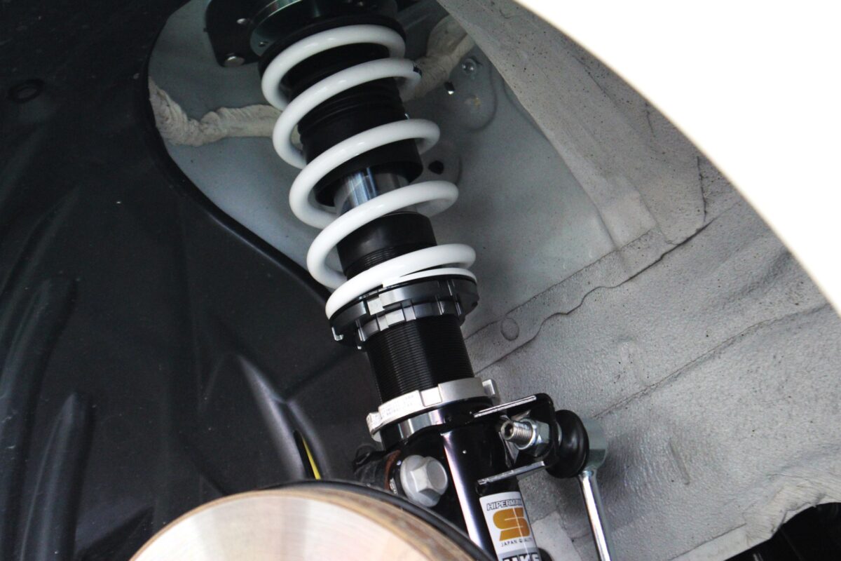 車高はメーカー推奨値にてセッティング。減衰力設定も一先ず推奨の15段設定に