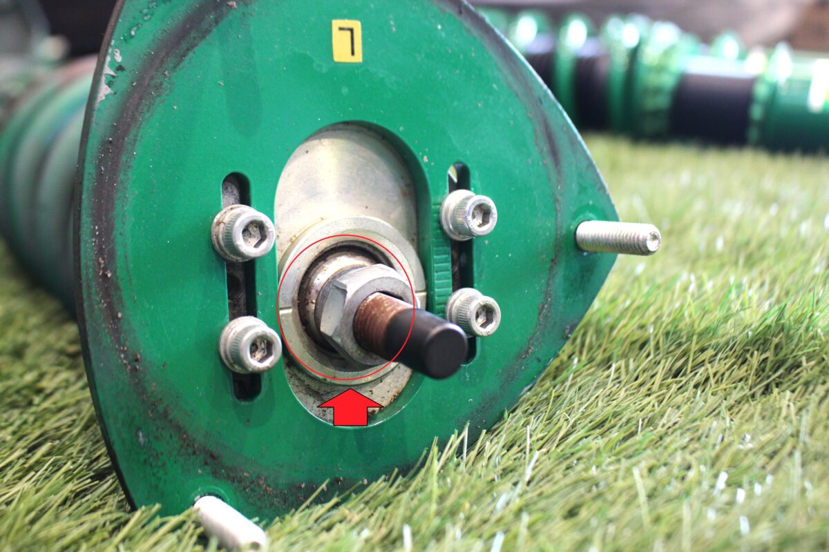 ピロアッパーを採用している車高調には、車体に接合する部分(アッパーマウントの中心)に金属製のピロボールが入っています。