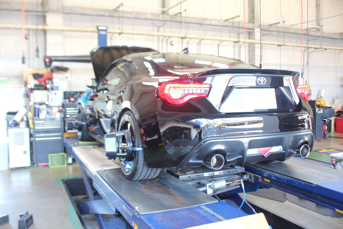 車高調を新品に交換作業の後は3Dアライメント調整を行います。