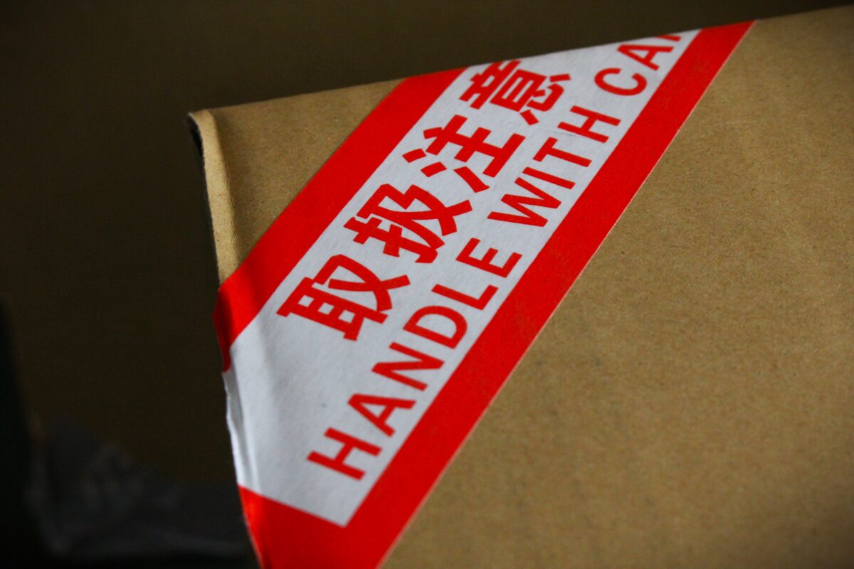 某日。店頭に届いた「取扱注意」「CAUTION」のシールが貼られた荷物。