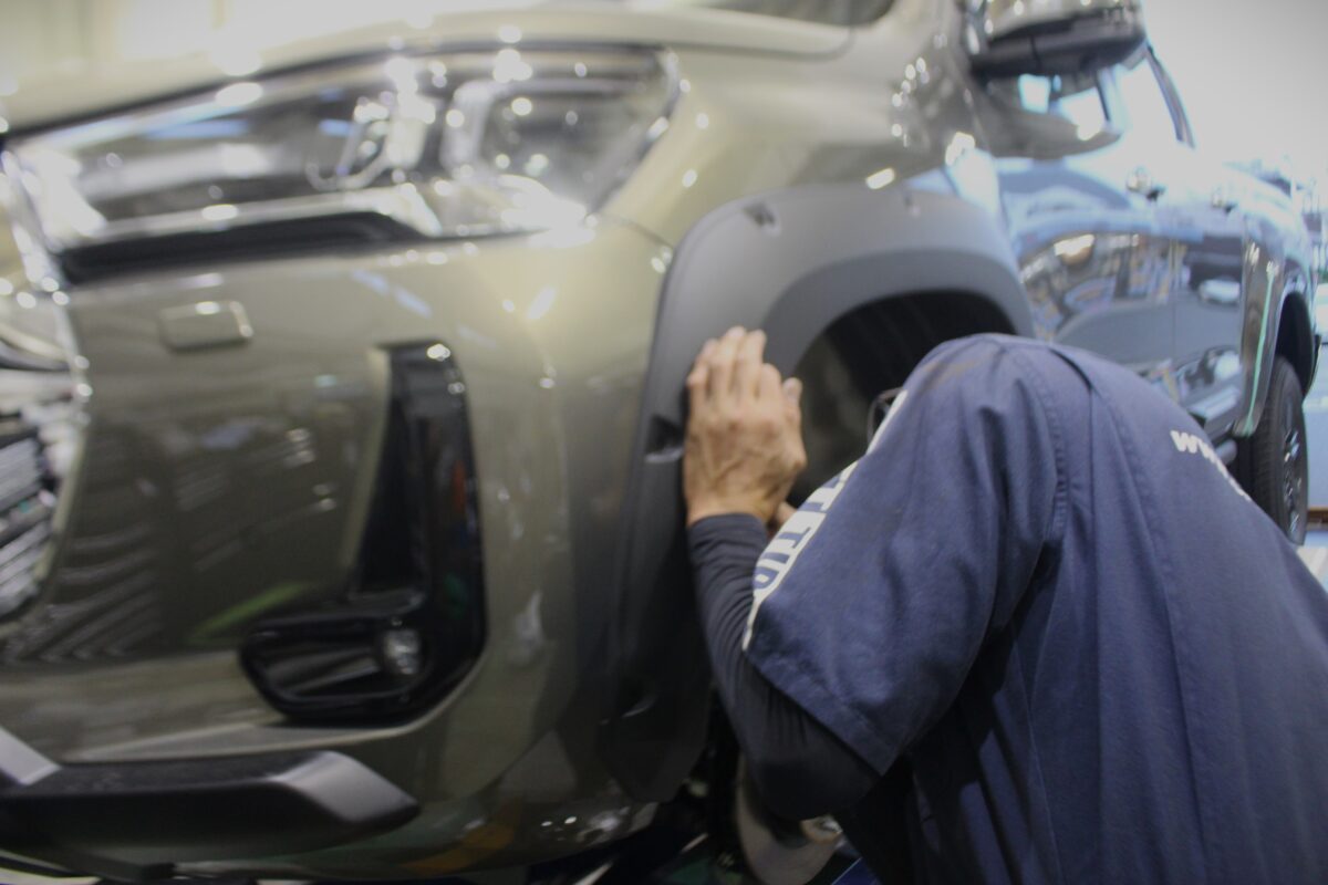 インナーフェンダーの部分も一緒に施工していきます。