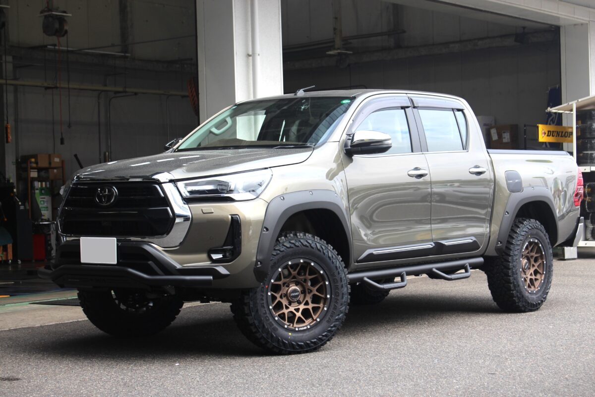 純正状態から一気にオフロード感ある仕上がりとなったハイラックス。