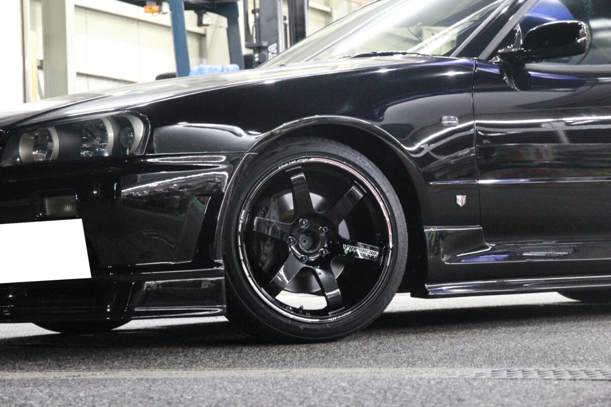 特にER34はステアリングを切るとホイールとインナークリアランスが