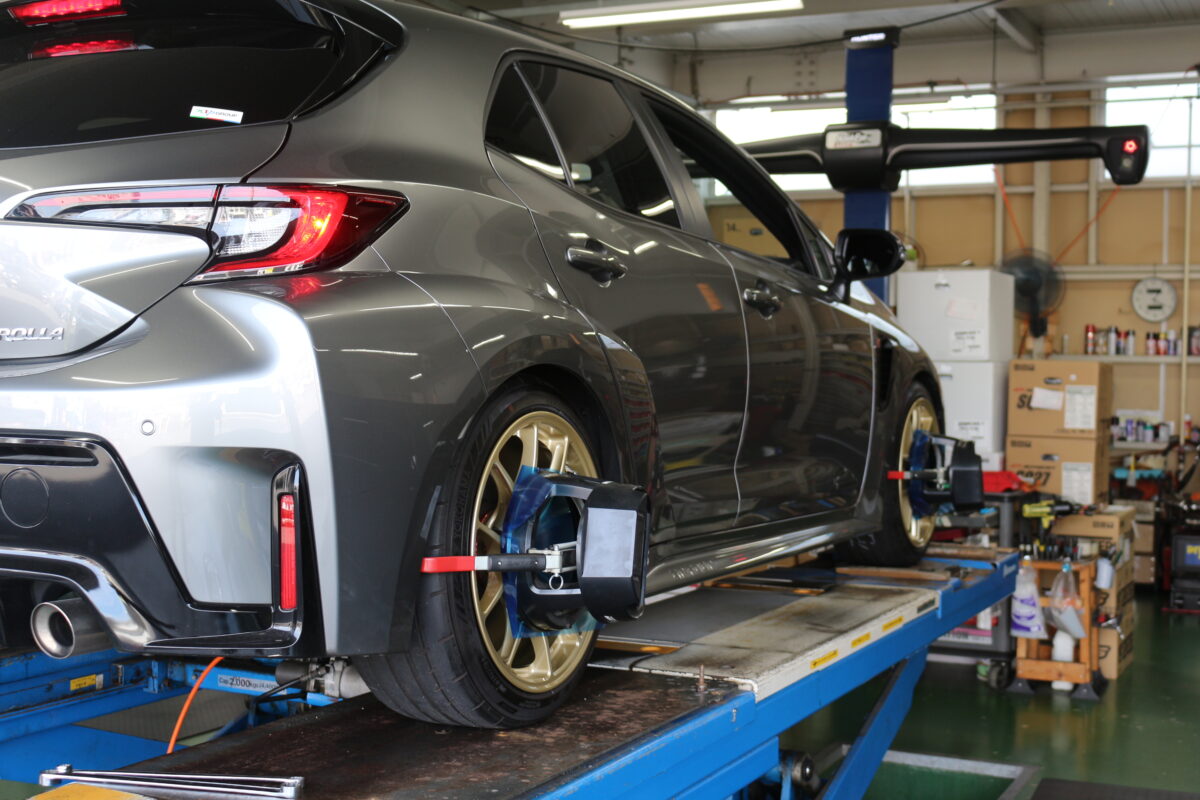 車高調を取付後、アライメントを調整していないとの事でしたので
