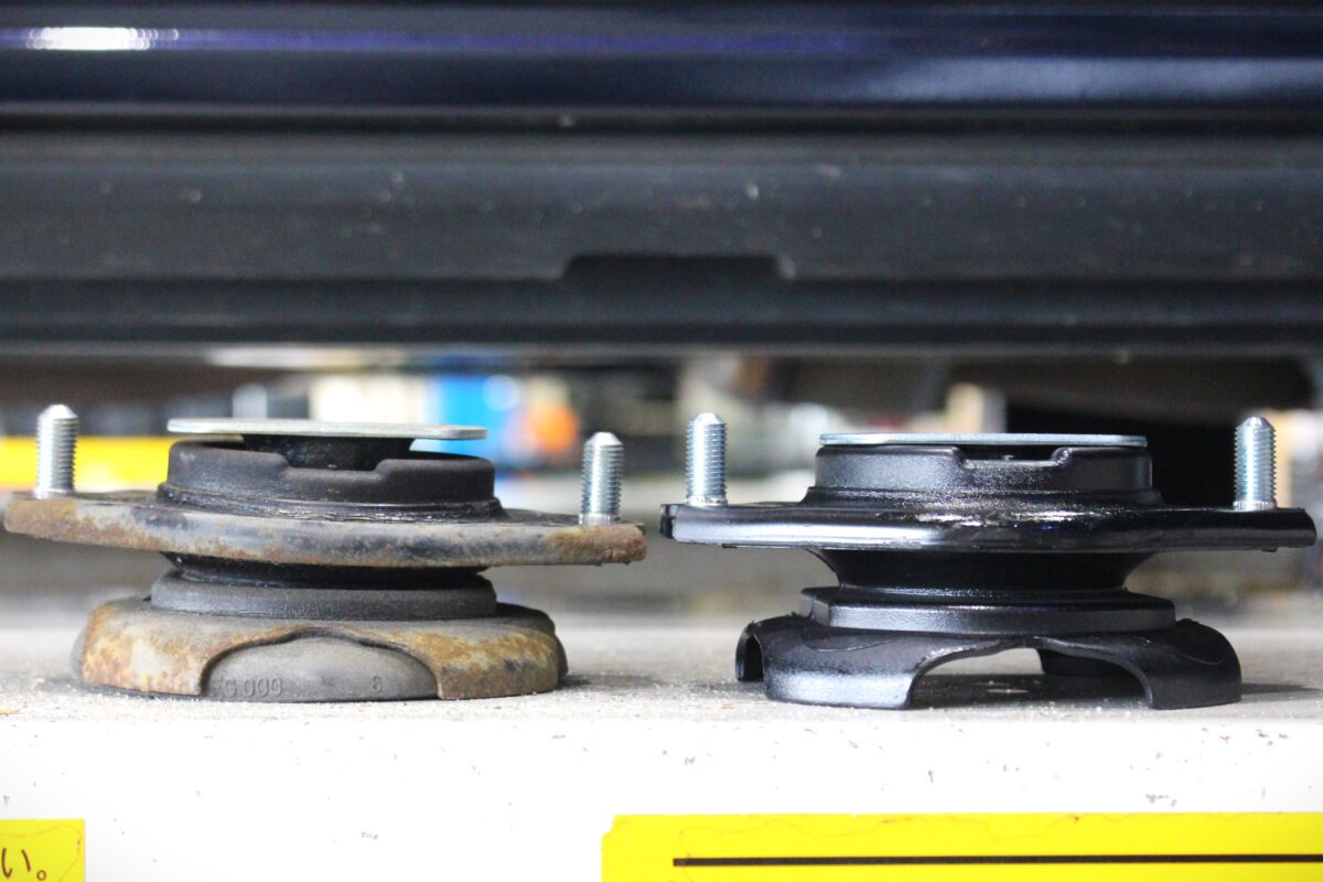 左が外した物、右が新品のリアサスペンションアッパーマウント