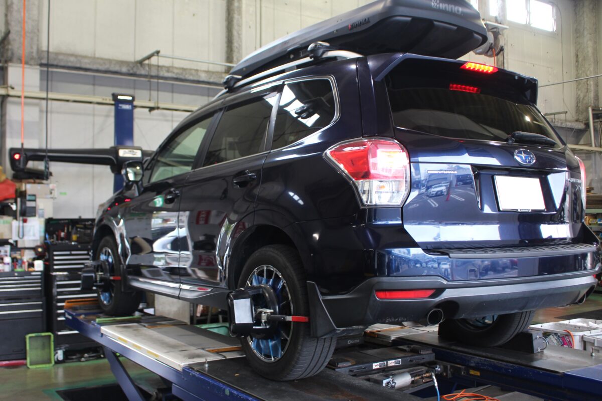 新品にリフレッシュしたサスペンションを組み込んだらアライメント調整を実施