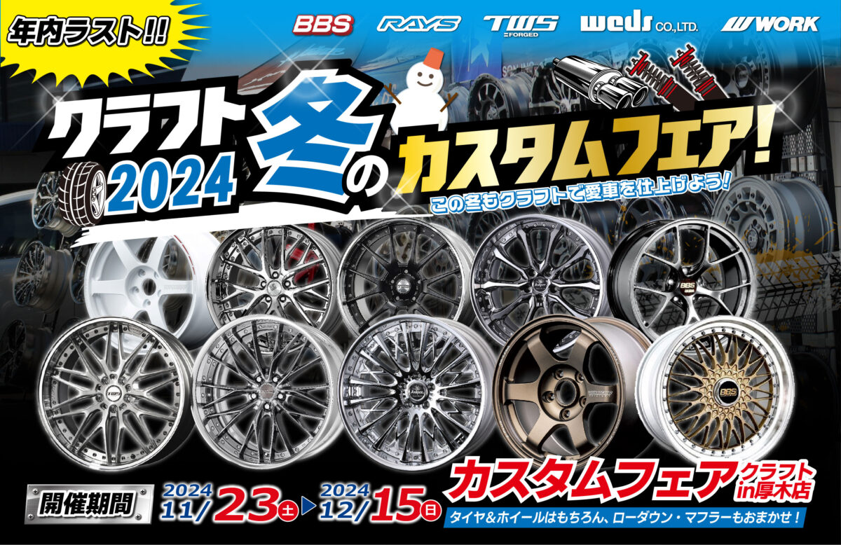 クラフト厚木店では 2024年11月23日(土)~ 12月15日(日) までの期間で冬のカスタムフェアを開催します!!