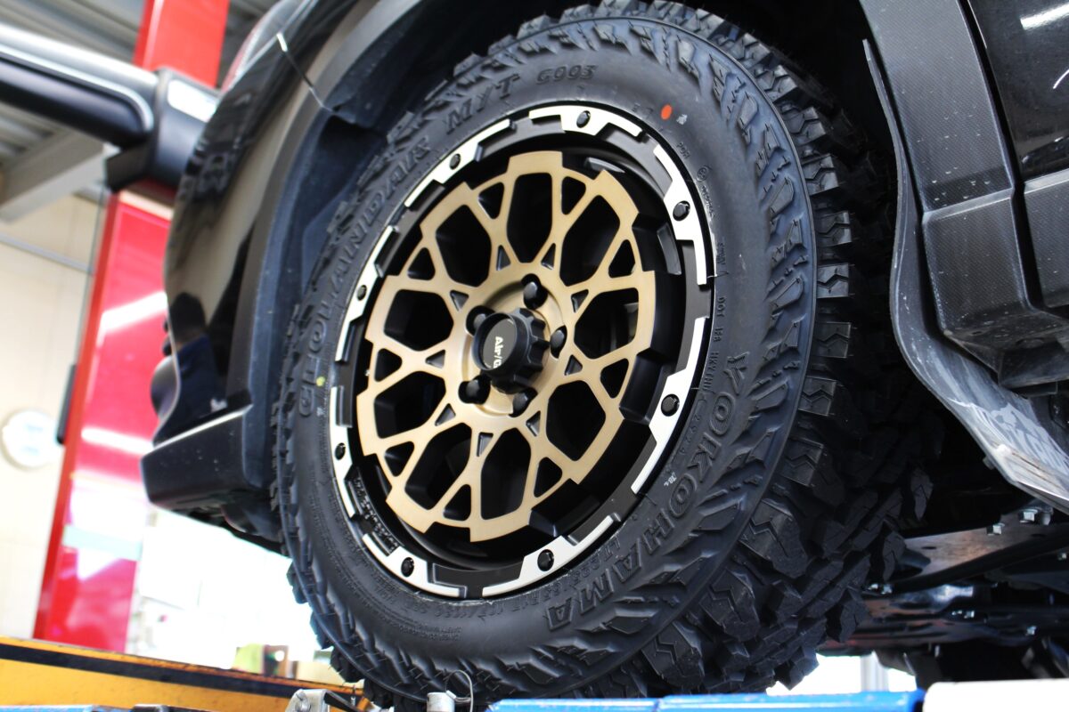 インチダウンを行ったことでタイヤもオフ系らしく肉厚に。