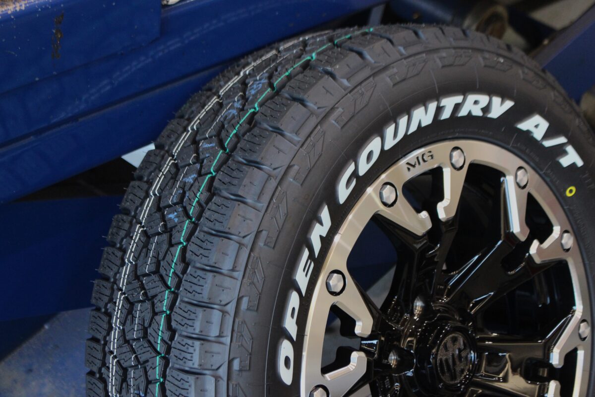 装着するタイヤは、オープンカントリーAT3。オールテレーンタイヤでホワイトレターを採用していることもあり、