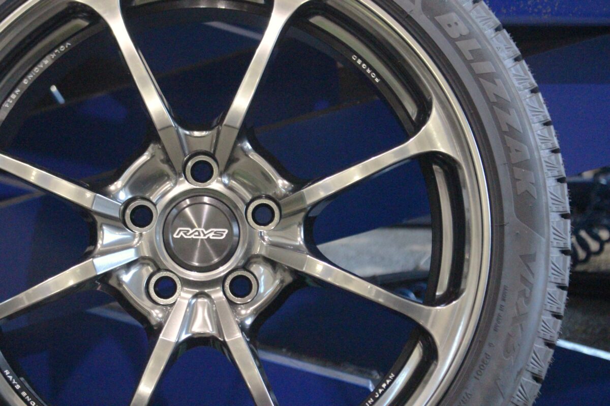 走りにこだわったパフォーマンスカーに装着したホイールはレイズ ボルクレーシングNE24一見8本スポークデザインのホイールに見えますが実は2×4のスポークレイアウト。