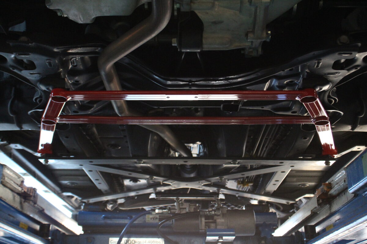 LA400K用のフロアブレースはフロント・センター・リヤと設定がありますが、今回はフロントのみの装着です。