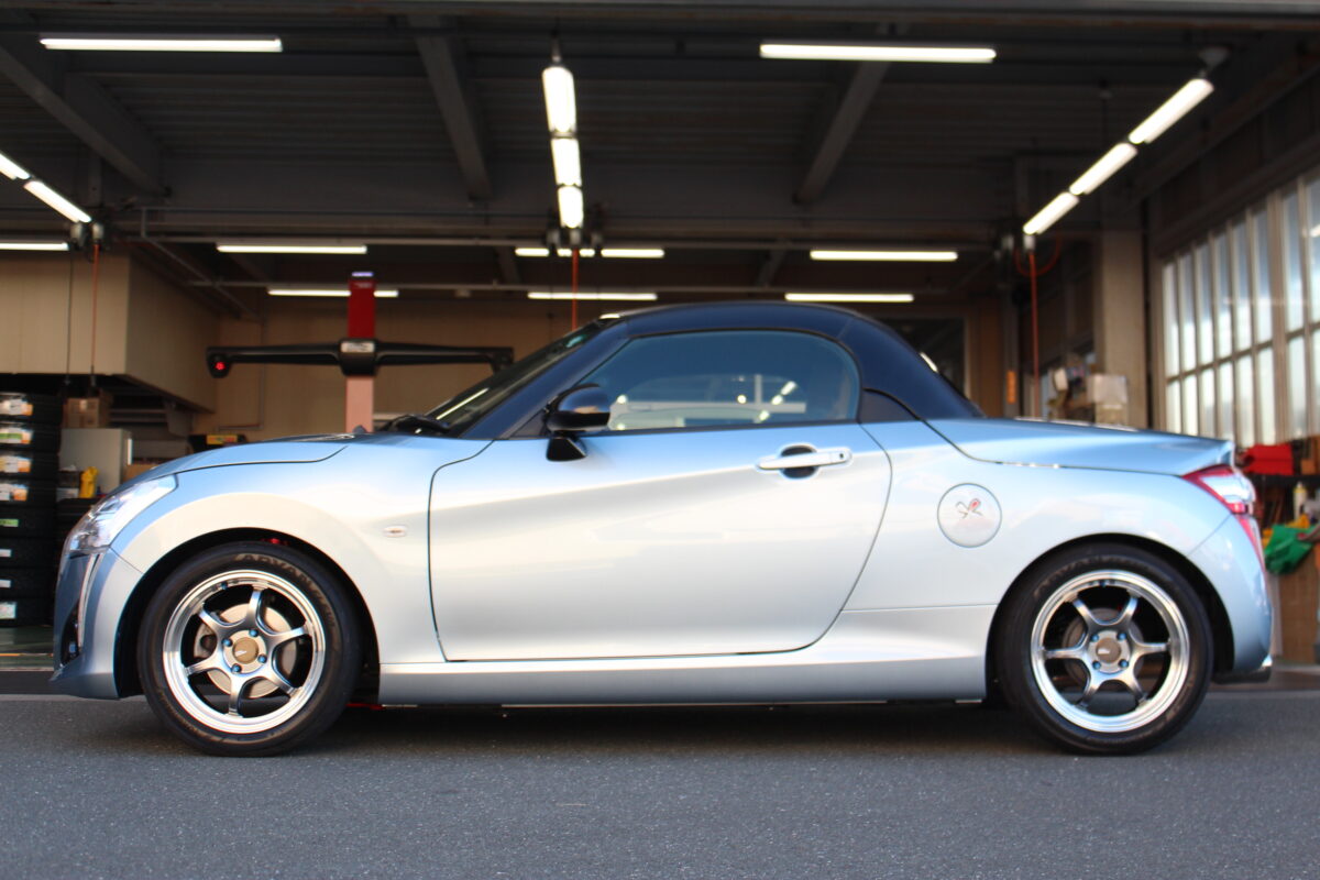 コペン用は軽自動車では珍しくフロントにキャンバー調整式ピロアッパーマウントを装備。