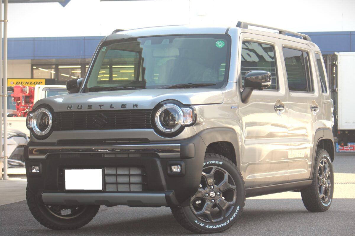 「遊べる軽」がコンセプトのハスラー。丸型のヘッドライトと、四角くワイルドな見た目が人気の車です。