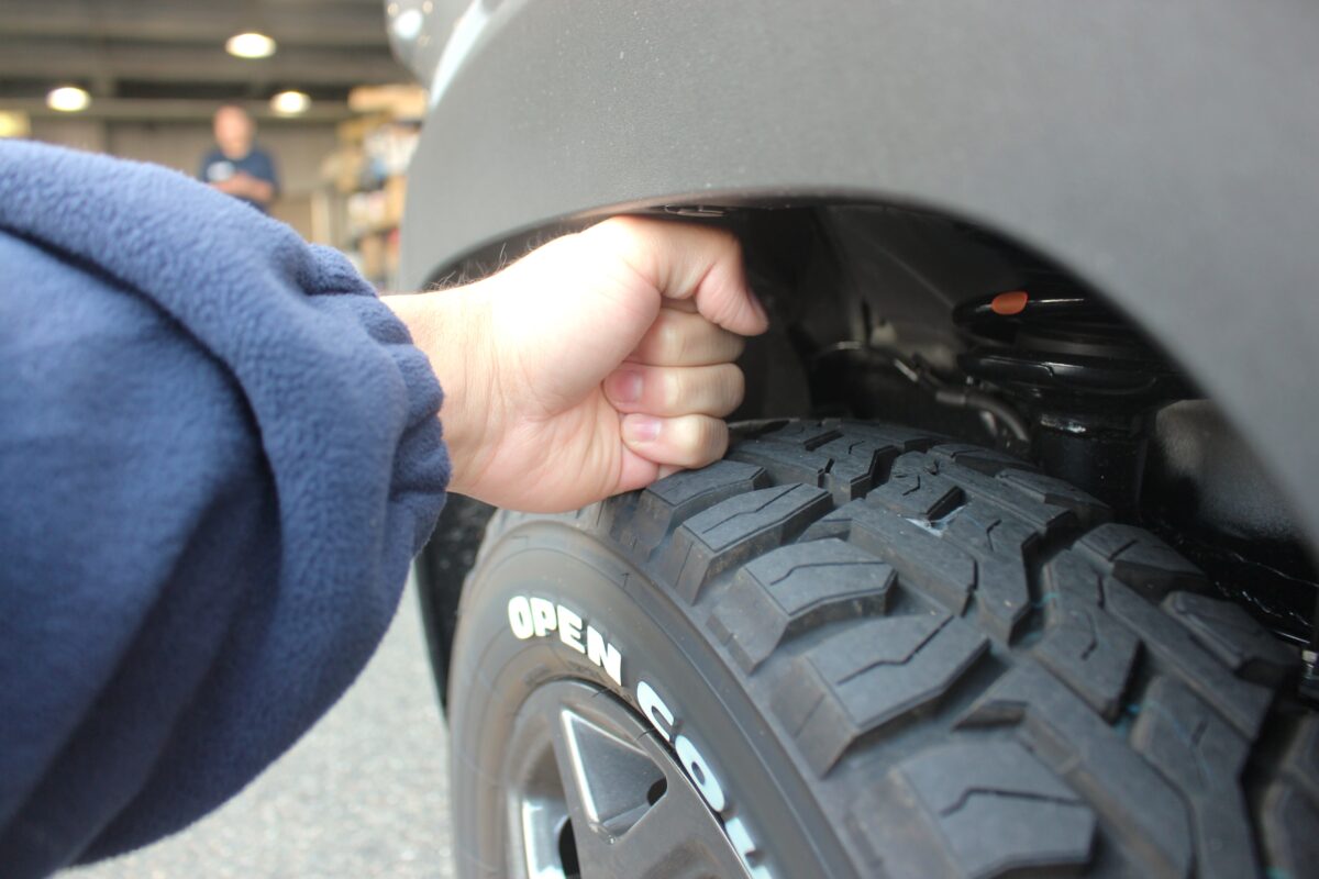 純正状態のフェンダークリアランスは拳1つ分ほどでした。