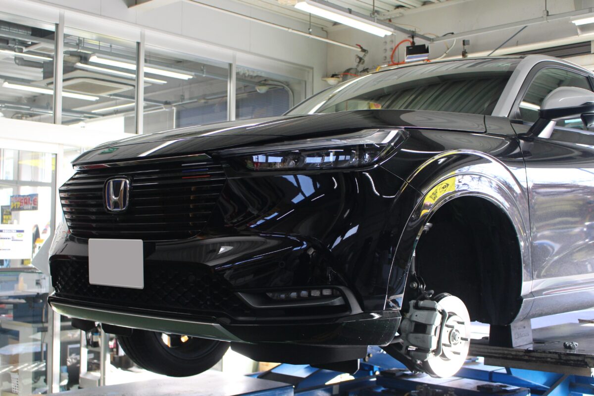 早速ヴェゼルに装着して行きます ホイールは純正をそのまま利用できるのもメリットの一つなんです🔥
