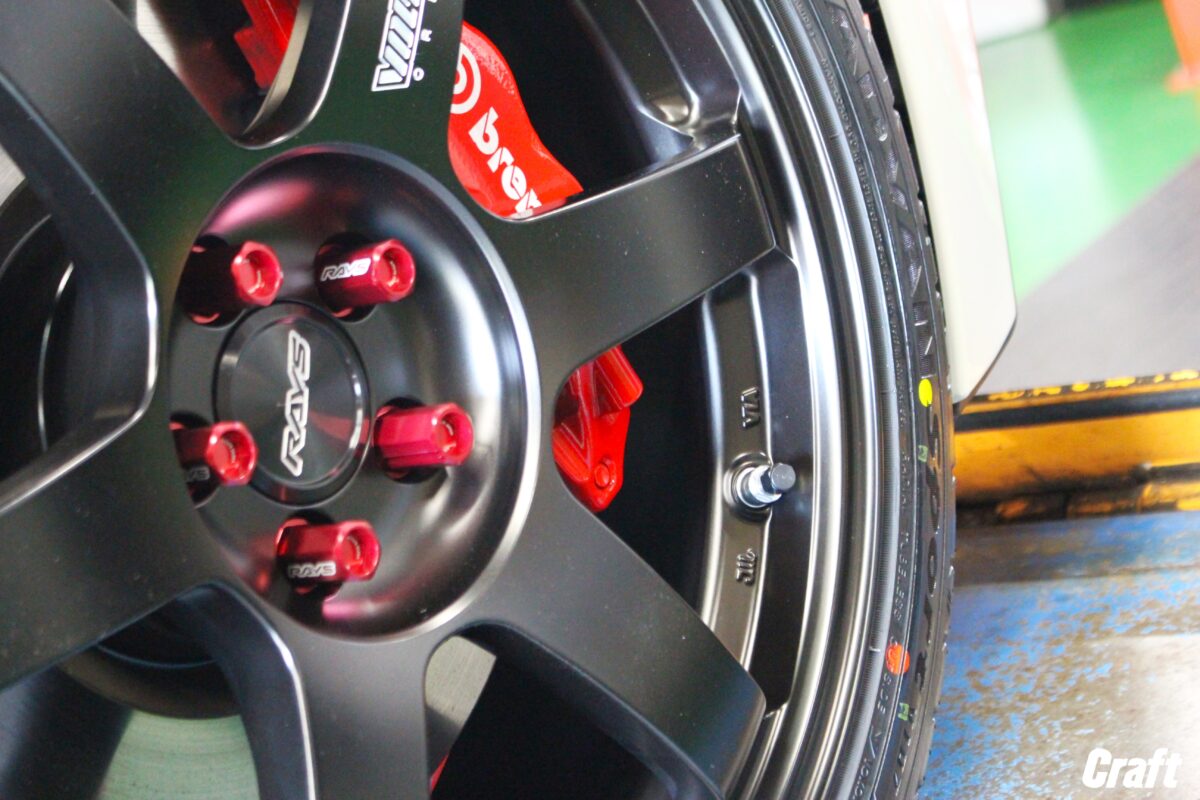 ちなみに、バルブの頭に装着するエアバルブキャップもアルミホイールに付属されている物をそのまま装着する事も可能!!