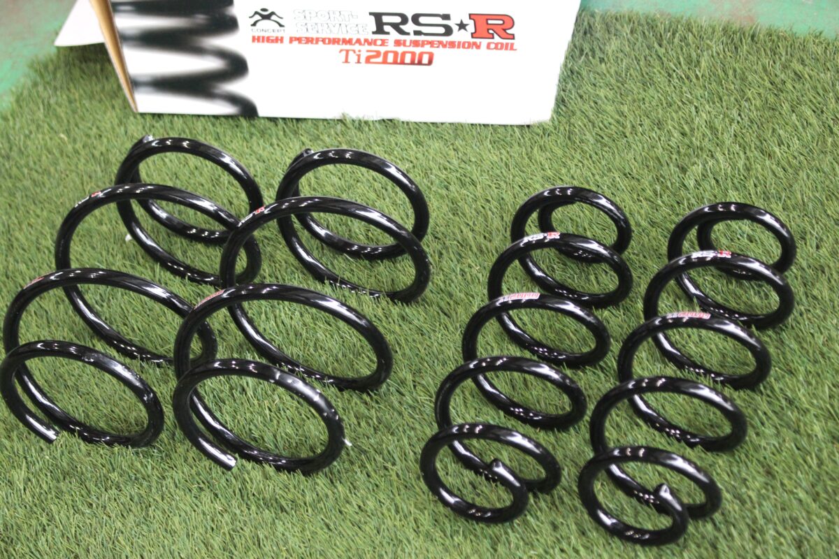 装着するのはRS-Rのダウンサス”Ti2000”チタン配合素材によって耐ヘタリ性能が優れることでヘタリ永久保証を実現!下げ幅が控えめな「ハーフ」とシッカリ下がる「ダウン」から選択可能◎