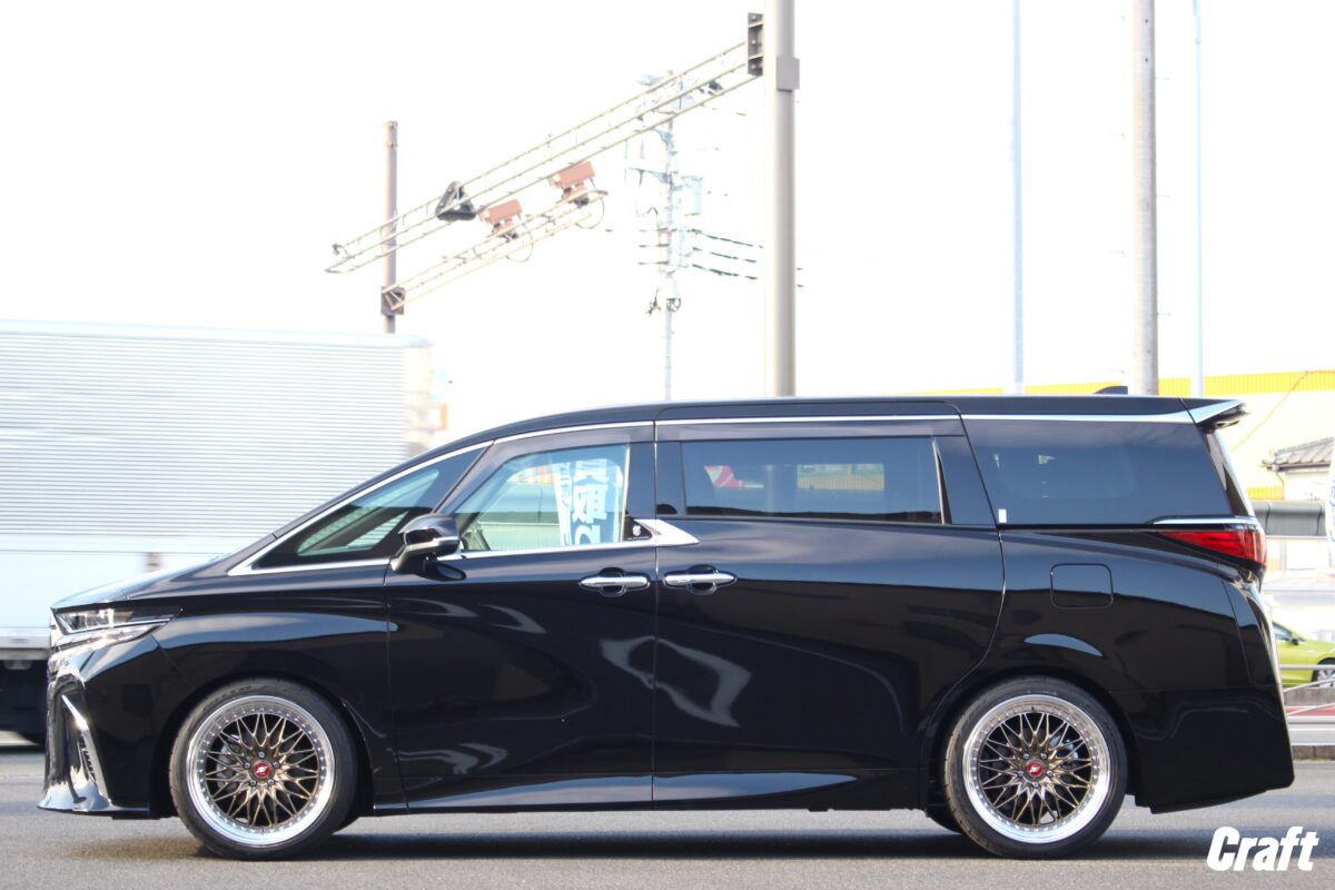 保安基準を狙うなら一般的には9.0Jで仕上げる30アルファード。 ですが、本日は更に太い9.5Jで完成させましたよぉ~👍     いつもありがとうございます、クラフト厚木店・佐藤です!!   本日のご紹介は千葉県からお起こしのT様・30アルファード。   ご入庫時はノーマル車輛でしたが 「 ローダウン&タイヤ・ホイール交換 」 を行いカッコ良く仕上げましたよぉ~✨     作業の流れは下記の通り。   「 入庫 → 足廻り交換 → タイヤ・ホイール取付け → 仕上げのアライメント調整 」 っと言った流れ。   この内容の作業であればその日のうちに完成します。   そうは言っても作業時間は数時間程度かかりますので、その間は無料の代車をご利用いただく事も可能 👍   ご自宅が近い場合は一旦帰宅する事も出来ますね。   逆に、遠方からお起こしのお客様は代車を使って神奈川の観光スポットを巡ってみるのも良いかも知れませんねっ♬♬   それでは完成したアルファードの登場で~す✨     ご購入いただいたホイールは 「 ウェッズ クレンツェ・フェルゼン 20インチ 」 となります!!   ホイールカラーはクレンツェの中で最も人気のある 「 SBCポリッシュ 」 をチョイス 👍   本日のミッションはカッコ良く仕上げつつ、保安基準も狙うと言うココ最近ご依頼の多い仕様。   通称 ワガママ仕様 とも呼ばれています。笑     保安基準を意識しているハズなのに、こうして見てもカッコ良く仕上がって見えますよね!?   そう見えるのにはカッコ良く仕上げるための工夫(ノウハウ)をしているんですよっ 👀   まず、30アルファードの20インチ仕様の場合、タイヤの組上がりをスタイリッシュに見せる事が重要となります!!   ■ 愛車のカスタムを検討中のオーナー様、クラフトカスタムフェアをぜひご利用下さい!!     30アルファードの20インチ仕様は、タイヤの扁平率が40扁平となります。   この40扁平のタイヤをいかにスタイリッシュに見せるかがとても重要なんです!!   そこで考えるのは太めのホイール(J数)を用意しタイヤを引っ張り仕様にすると言う案。   それならばリム幅は 10.0J を用意してあげれば良い訳ですが、そうなると保安基準をクリアすると言う点で少し心配が残ります。   ちなみに、30アルファードで保安基準を狙った仕上がりを目指す場合、一般的には 9.0J を使います。   ですが、今回はタイヤをスタイリッシュに見せるために 「 9.5J 」 を選択しています!!   9.5Jをチョイスする事で、40扁平のタイヤがやや引っ張り仕様になり、組上がりがスタイリッシュに見えてくれるんです 👍     そして、本日装着したクレンツェ・フェルゼンは3ピースホイールとなり、設定されているインセットも豊富にあります。   そんなサイズ設定の中からちょうど良い出ヅラに仕上がるサイズをチョイスしましたっ 👍   装着後に糸を垂らしてチェックしてみましたが、保安基準でチェックされる30度~50度の範囲で見ても問題ナシ!!   オーナー様お好みの 「 カッコ良く仕上げつつ保安基準もクリアする 」 と言うワガママ仕様を無事に完成させる事ができましたよぉ~✨     こうしてノーマル時のアルファードと比べると違いは歴然ですよね!!   ちなみに、本日のローダウン量はおよそ50mm。   メーカーさんオススメのローダウン量よりもう少し下げた仕上がりとなりま~す✨   それでは最後に気になる出ヅラをチェックしてみましょう 👀     30アルファードはリア50度の位置がOUTになりやすい車輛です。   その理由はフェンダーのラインが一定ではない為。   要は前側30度やフェンダー中央部より、リアバンパー付近がキュッと絞られているんです!!   保安基準を狙う場合はそう言った車輛ごとの特徴をしっかり理解したうえでホイールサイズを選ばなければいけません。   皆様の愛車もクラフト厚木店でカッコ良く仕上げてみませんか!?   それではご相談お待ちしておりま~す♬♬     T様、この度は遠方よりお越しいただきまして誠にありがとうございました!!   車高のバランスやホイールのサイズ感など、イメージ通りに仕上がってくれましたよねっ✨   これで愛車でのドライブが今まで以上に楽しくなるでしょうね。。。   それでは楽しいCarライフをお送り下さいね、またのご利用よろしくお願いしま~す☆☆     管理番号:0412507031005