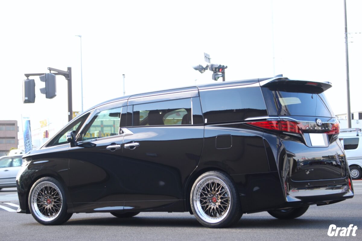 【30アルファード】WORKエモーションT5R 2P 20インチ装着!以前の仕様からサイズを算出、理想の出ツラ化を実現した本気カスタム。   アルファード/ヴェルファイアのご来店が多いクラフト一宮店です。 本日は、まだまだカスタム熱が冷めやらない大人気ミニバン、 30アルファードのご紹介です。   「今のホイールも気に入っているけど、もっと自分好みのツラにしたい!」 今回はそんなオーナー様の熱いリクエストにお応えすべく、 足元の仕様変更(リメイク)のお手伝いをさせていただきました。     選ばれたのは、スポーツとラグジュアリーを融合させたあの名作ホイール。 こだわりのセッティングで、見違えるような迫力ある姿へ進化します。   この度装着したのは、 スポーツカーに絶大な人気を誇る「エモーション」シリーズ。 その中でも、力強い5本スポークデザインが特徴の 「T5R」の2ピースホイールモデルです。     あえてこのスポーツテイスト溢れるホイールを、 重量級ミニバンの30アルファードに合わせるのが、 最高にクールなんですよね。   カラーはWORK特有の深みがある「GTS(グリミットシルバー)」。 光の当たり方で陰影がくっきりと浮かび上がり、 アルファードの高級感あるボディに負けない、上品かつ力強い輝きを放ちます。     そして、今回のカスタムの最大のハイライトが「サイズ選び」です。 2ピースホイール最大のメリットは、 インセットをミリ単位でオーダーできること。 今回は、以前の仕様からサイズを算出、 理想の出ツラ化を図るべく、オーナー様と綿密な打ち合わせを行いました。   「前のホイールはこれくらいだったから、次はあと〇ミリ外に出して、リムも深く取りたい」 そんな理想を形にするため、現車でのセッティング状態をベースに限界サイズを計算。 フェンダーギリギリを攻めつつ、 美しく収まる究極のツライチマッチングを導き出しました。 この「自分だけのサイズを作る」過程こそが、 カスタムの醍醐味ですよね。     迫力の20インチを支えるタイヤ選びも妥協しません。 組み合わせたのは、 ヨコハマタイヤのフラッグシップ・ミニバン用タイヤ「ブルーアースRV03」。   重量のある30アルファードでも、 ふらつきをしっかり抑え、静粛性や乗り心地も抜群。 見た目のカッコよさだけでなく、 同乗者を乗せてのドライブも快適にこなせる、 まさに「死角なし」の組み合わせです。     いかがでしょうか!この圧倒的な存在感。 30アルファードの重厚なボディに、 WORK エモーションT5R 2Pのスポーティな 5本スポークが見事にハマっています。 オプションのセンターキャップも追加で入れていますが、 この相性も合わさり更に仕上がっています。     以前の仕様からサイズを算出、 理想の出ツラ化に成功したフェンダーとのクリアランスは、 思わずため息が出るほどの美しさ。 GTSカラーの艶やかな輝きと、 2ピースホイールならではの段リム(ステップリム)が、 足元に圧倒的な立体感を生み出していますね。   この度はご用命いただき、誠にありがとうございました。 30アルファード × WORK エモーションT5R 2P。 見た目の迫力も、走りへのこだわりも、 すべてがアップデートされた最高の一台に仕上がりました。     当店では、ホイールの仕様変更や、 「今の状態からもっとツラを攻めたい」といったご相談も大歓迎です。 豊富なデータと実測で、お客様の理想のスタイルを形にします。   それではまた次回のブログもお楽しみに。 クラフト一宮店でした。   管理番号:0042603081003