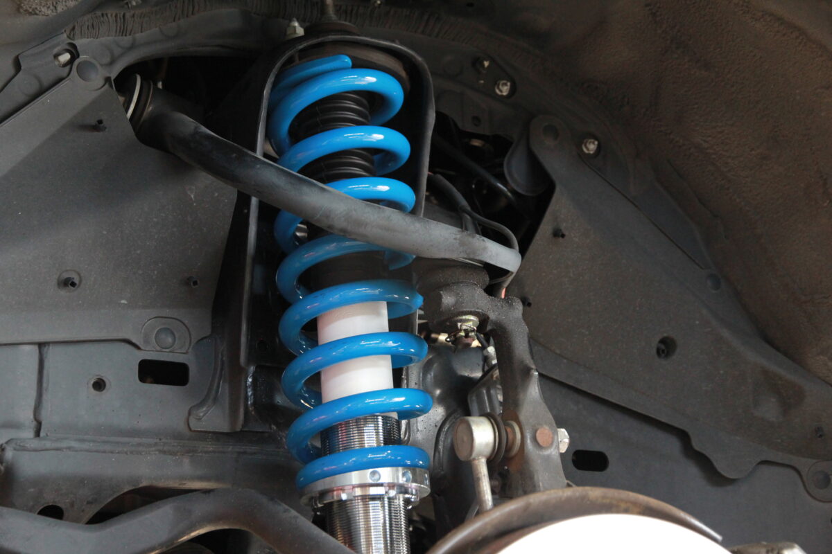 水色のスプリングに白色のショックアブソーバーが爽やかなカラーリング