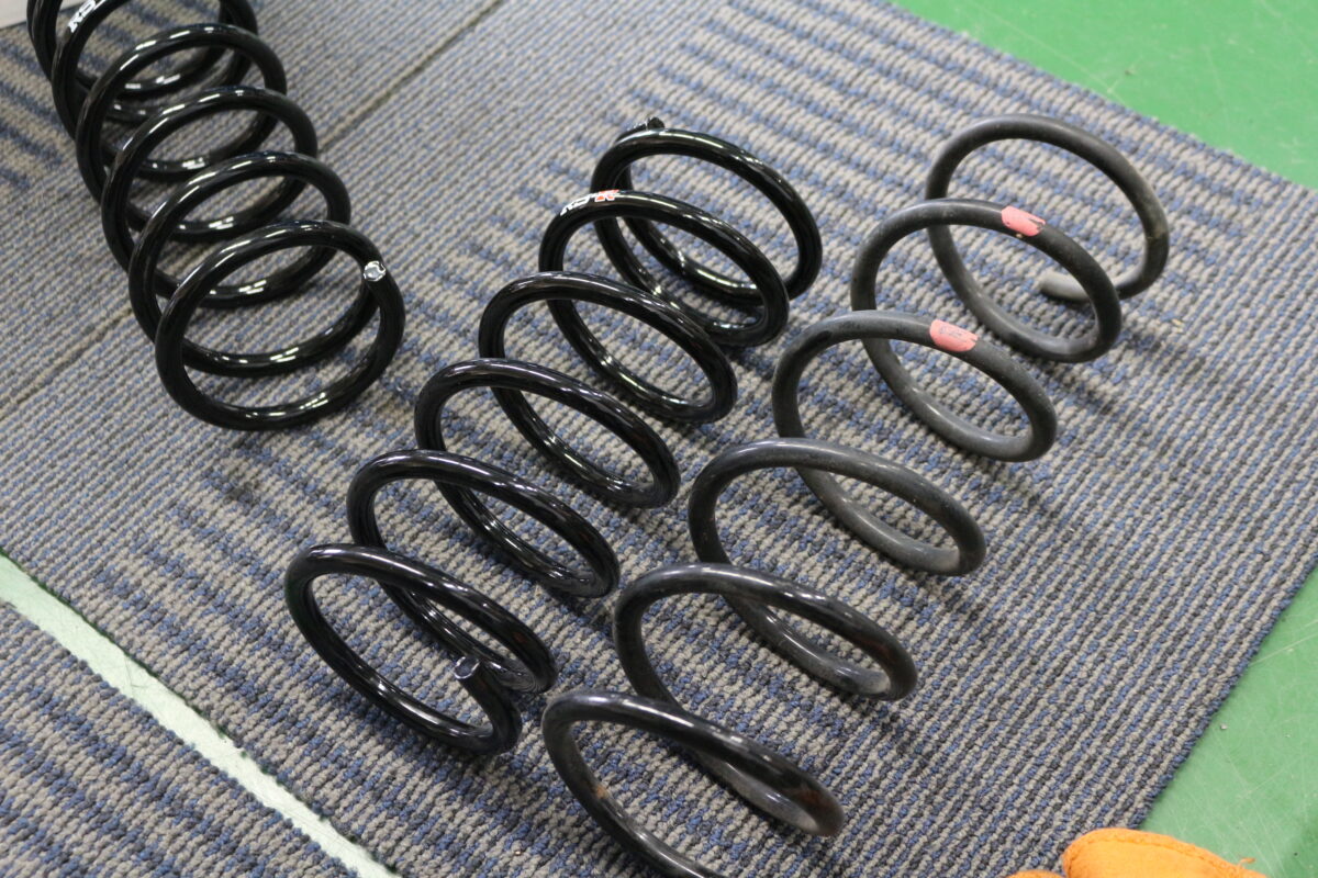 右が純正バネで左がRSRダウン。