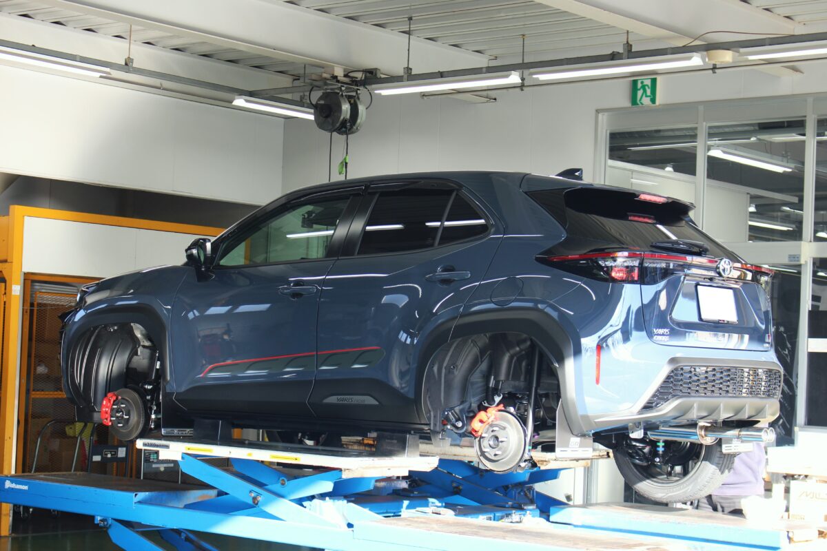 渋いボディカラーでGR純正マッドフラップがかっこいいヤリスクロスGRが入庫しました。