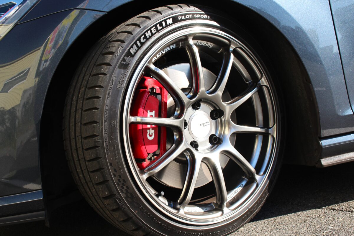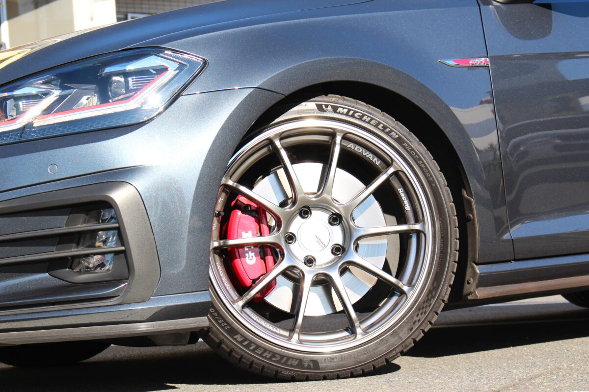 キャリパーは専用のレッド塗装になるので、18インチ+細身のスポークでしっかり「GTI」を主張(^^♪