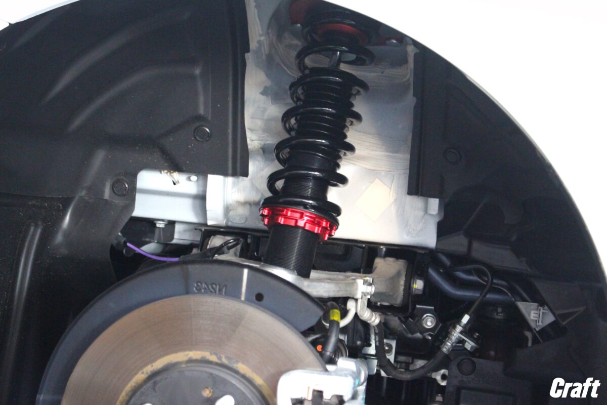 車高調と言う事で、車高の高さを自由に選択できる訳ですが、今回は比較的低めの車高にセッティングを行いました。