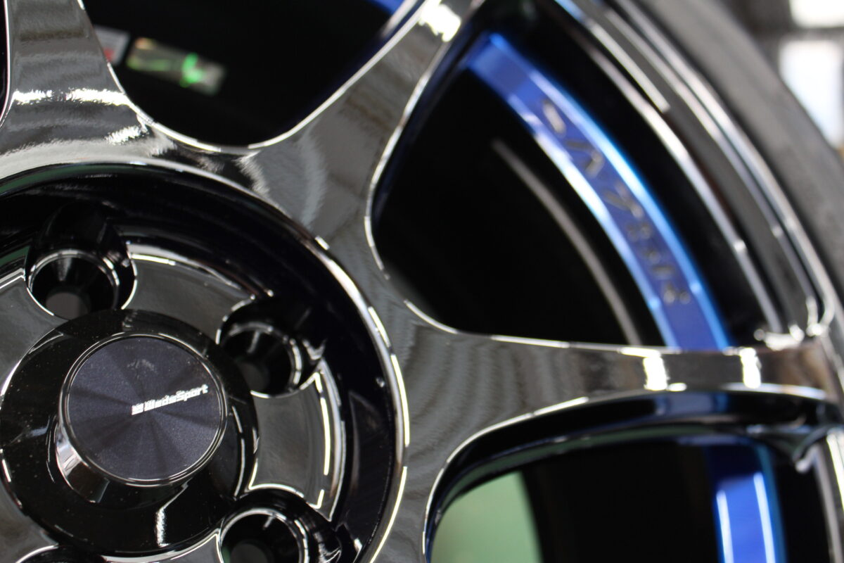 光沢のあるブラックスパッタリングをベースにリムのアンダーカット部にブルークリアを塗装。