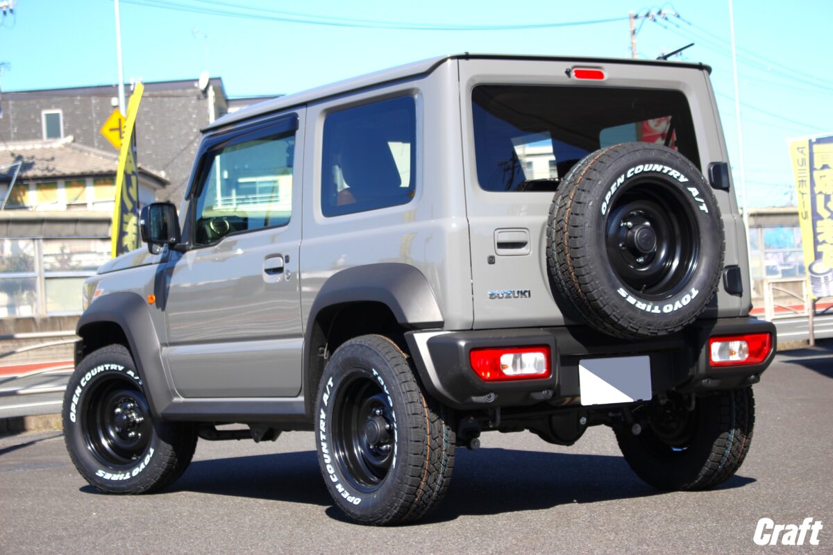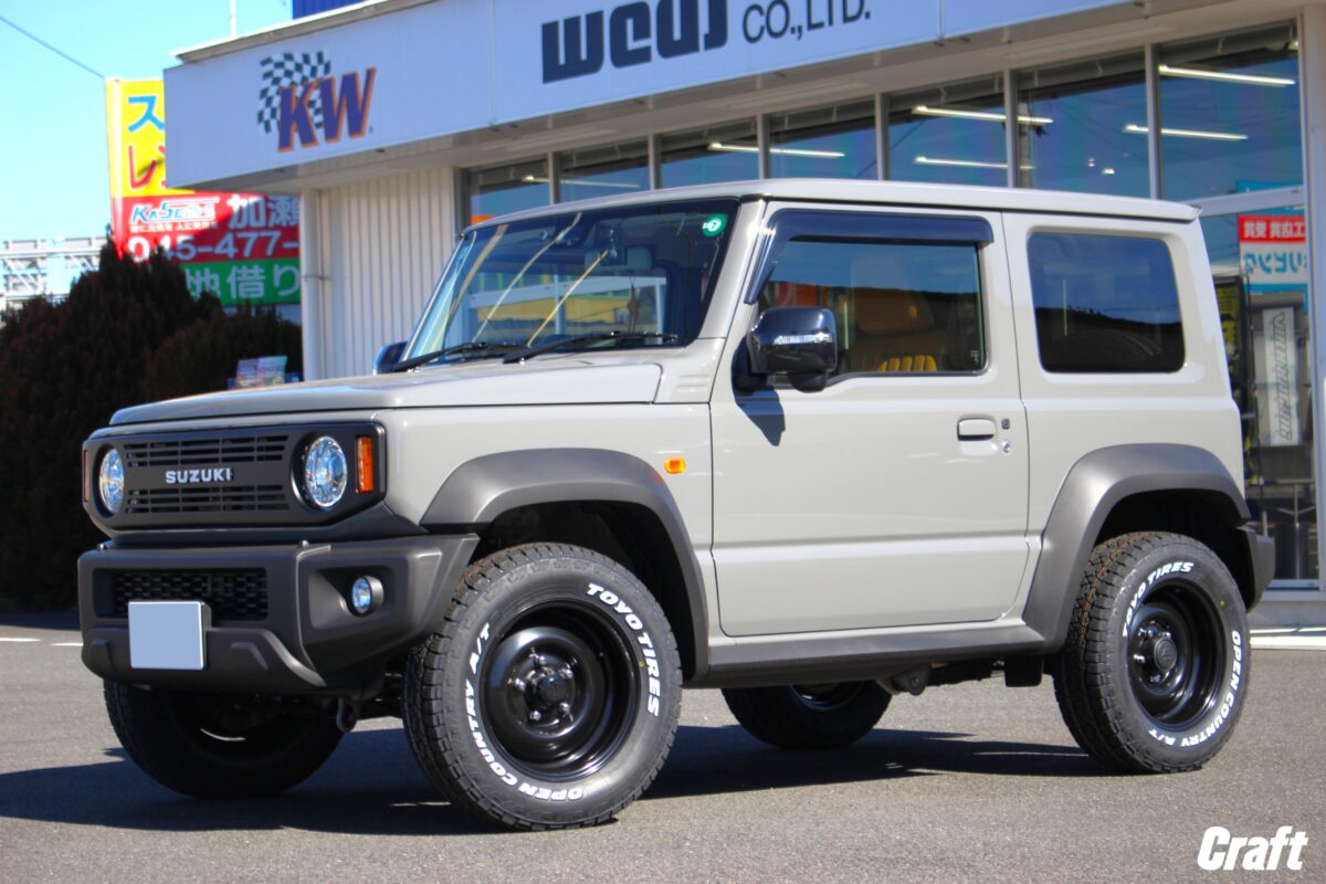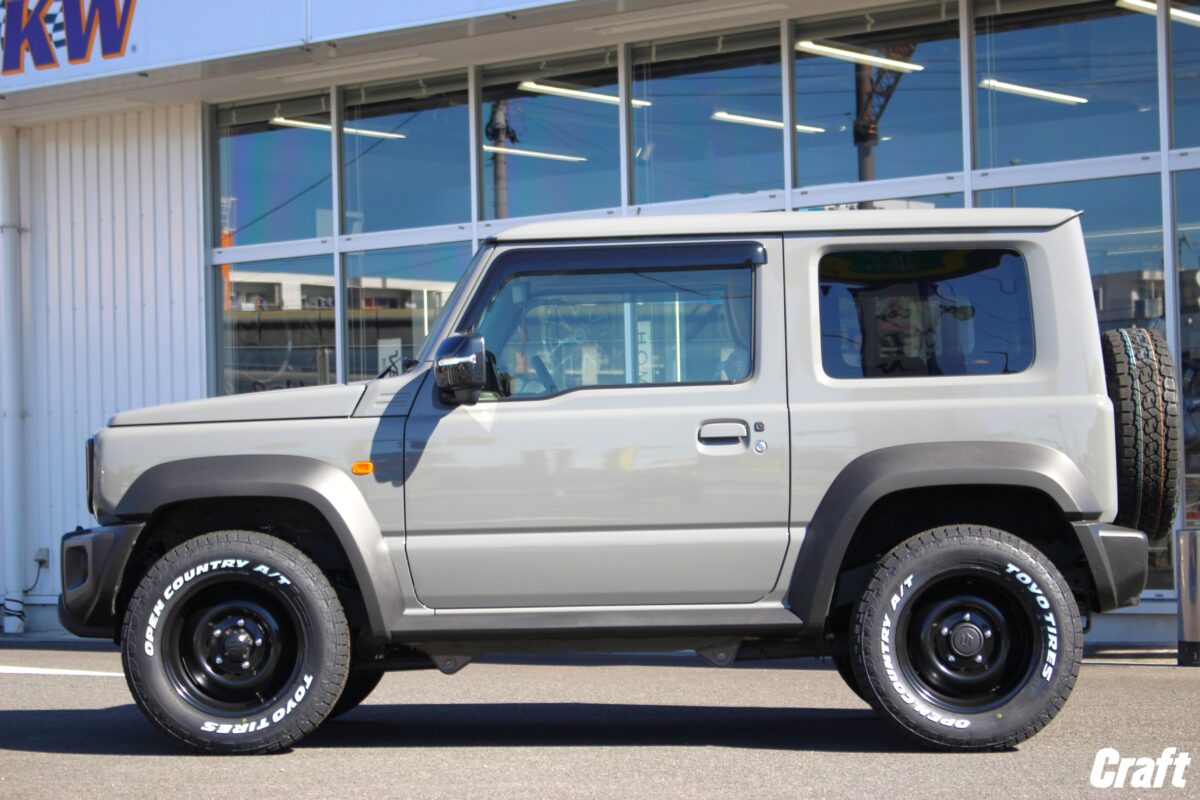 ジムニー ノマド JC74 へ 「 シーエルリンク オールドスタイルスチールホイール 」 を装着してみてはいかがでしょうか?? 本日はジムニーシエラへ装着しましたよぉ~✨     いつもありがとうございます、クラフト厚木店・佐藤です!!   本日のご紹介はN様・ジムニーシエラ JB74。   先日、5ドアタイプのジムニーノマドが発売され、多くの注目を集めている スズキ ジムニーシリーズ。   「 ジムニーノマド JC74 」 が納車されたらタイヤ・ホイールを交換するぞ。。。   そんなオーナー様もぜひ参考にしてみて下さいね~♬♬     本日装着したアイテムは 「 C.L.LINK オールドスタイル スチールホイール 」   シーエルリンクさんからリリースされているタフで無骨なオールドスタイルホイール。   コチラのホイールは ” 初代ジムニーのホイールデザインを現代の仕様に合わせたサイズ設定にてリメイク ” されたスチールホイールとなります。   ホイールデザインはシンプルかつ無骨なオールドスタイルですが、現行モデルのジムニーに装着してもなぜか似合ってしまう。。。   そんなアイテムなんですよねっ♬♬     そして シエラやノマド に装着するホイールデザインは見ての通り、なかなかのリム深デザイン!!   ホイールがシンプルだからこそ一緒に組み合せた 「 オープンカントリー AT3 」 のホワイトレターが一際目を惹きますよねっ♬♬   ちなみに、装着しているタイヤサイズは突出や干渉の心配がない 215/70-16 となります!!     続いて横からの写真もどうぞ!!   見ての通り、車高はノーマルとなりますのでタイヤサイズは215サイズでちょうど良いですよねっ 👍   リフトアップも同時に施工するオーナー様の場合、タイヤサイズは 225幅?? それとも235幅?? これは悩ましいところですよね。。。   ちなみに、タイヤ外径を大きくしていく場合、バンパー下部の小加工など少~し手を加えてあげる必要が出てきます。   タイヤサイズはクルマの仕様やどこまで手を加えるかで選ぶのが良いでしょう!!     そして今回は4本ではなく、背面を含めた5本でオーダーいただきました!!   背面はスペアとなりますので、ほぼほぼ活躍する事が無いように思われがちですが。。。   実は常に活躍しているんです!!   えっ!? 常に活躍している?? そう思った方も多いでしょうかね 👀     背面のスペアが常に活躍していると言う意味合いは 「 後ろから見た時のカッコ良さ 」 と言う部分にあります。   通常の4本は横から見た時に見える部分。   そして背面に装着している1本は後ろから見える部分。   ご自身のクルマの前に本日ご紹介のジムニーシエラが見えた時、間違いなく背面タイヤに目がいきますよね??   そうなんです、背面タイヤはリア周りのカスタムに一役かってくれているんですっ 👍   そんな意味から常に活躍していると言う表現を使わせていただいた訳です。笑   もちろん常に後ろから見られる部分なので、ホワイトレターの配置もキレイに見える位置にて組み込んであるんですよぉ~✨   せっかく背面にも装着するならこの辺の細かい部分まで拘ってあげたいですよねっ♬♬   ジムニーシエラ&ジムニーノマドのホイール交換はクラフト厚木店までぜひご相談くださ~い!!     N様、この度はご利用誠にありがとうございました!!   入荷までだいぶ時間が掛かってしまいましたが、ようやく完成ですねっ✨   お次は リフトアップ なんていかがでしょうか?? 笑   それではまたのご利用よろしくお願いしま~す☆☆