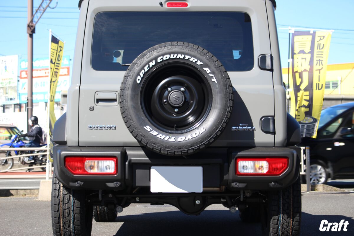 ご自身のクルマの前に本日ご紹介のジムニーシエラが見えた時、間違いなく背面タイヤに目がいきますよね??
