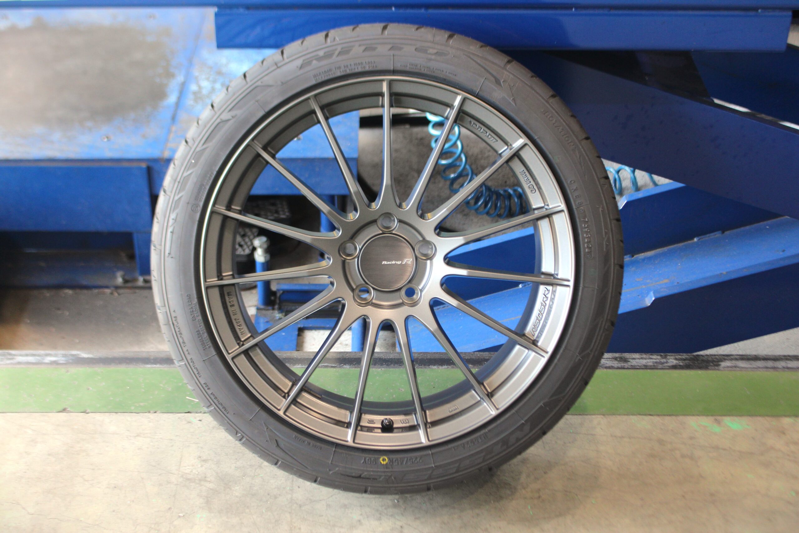 装着したホイールはシャープな15本のフィンスポークが特徴のENKEI“RS05RR”サイズによってF、M、Rの3種類のコンケイブフェイスを採用し、ホイールに立体感を持たせることで迫力を演出します。
