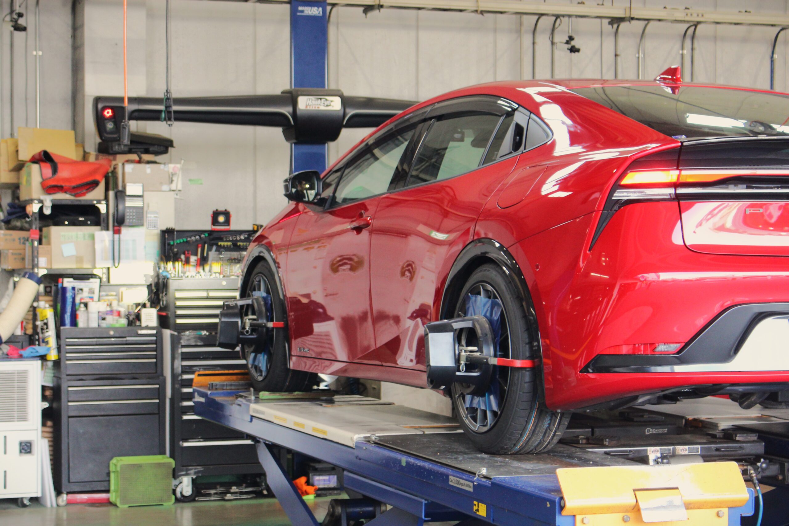 足回り部品交換によって各部の数値にズレが生じてしまい、そのままでは走行に支障が出てしまいます。