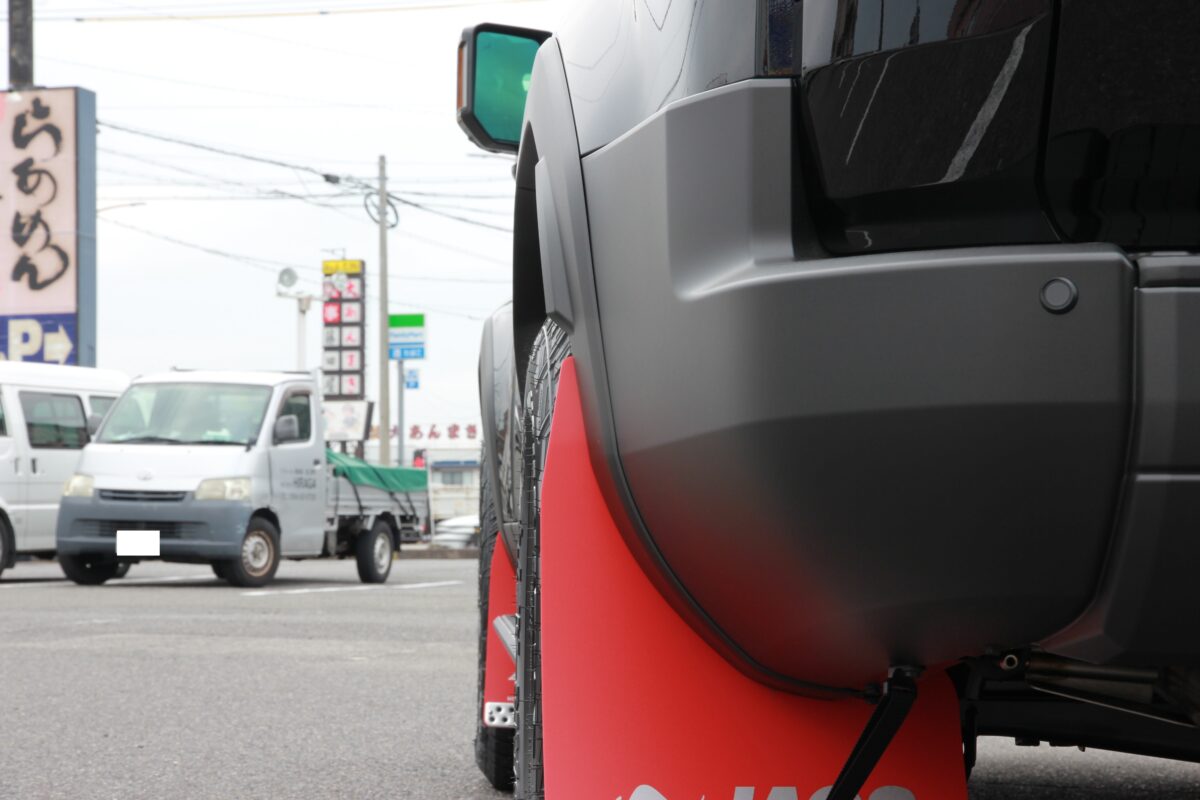足元をブラック系で固め、さし色にJAOSのマッドガード。