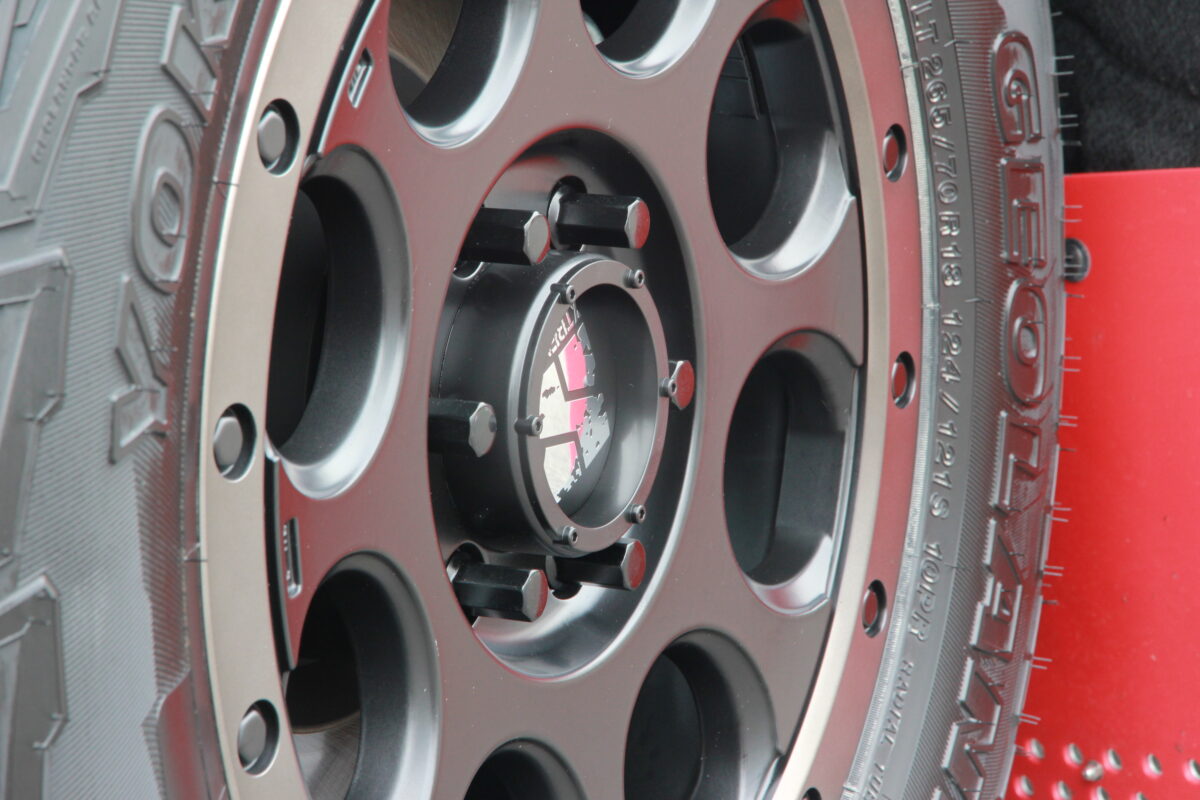 4×4ホイールではトラディショナルな丸穴、いわゆるレンコンホイール。
