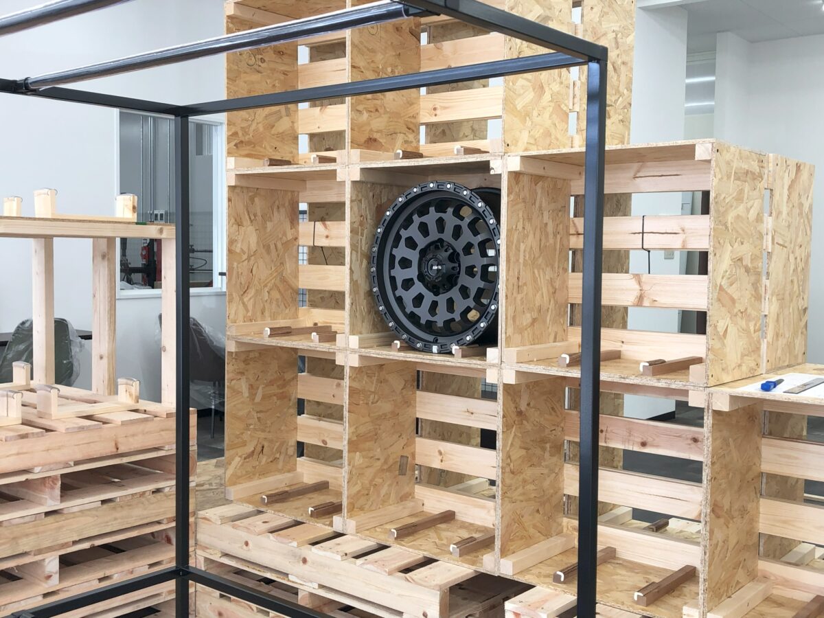 ホイール展示ラックが設置されホイールショップらしくなってきました!
