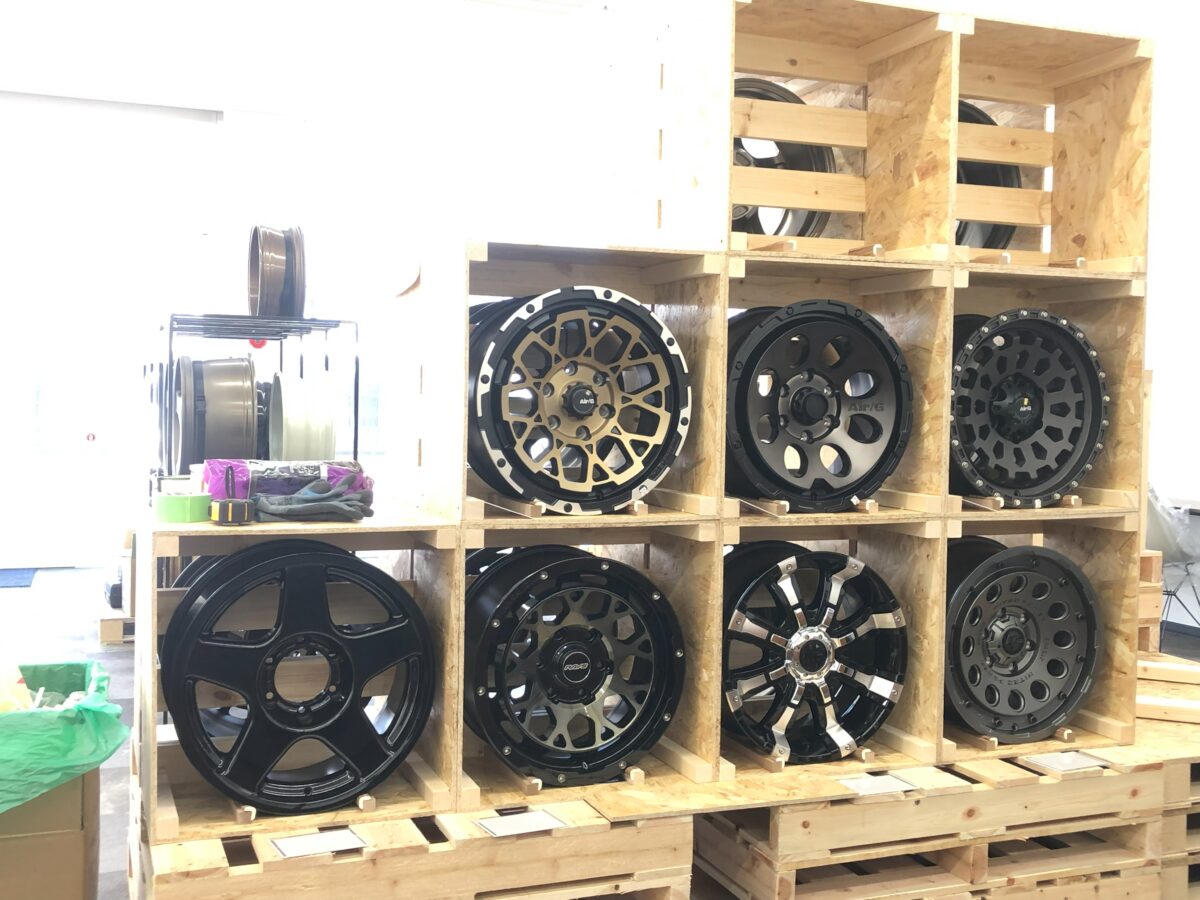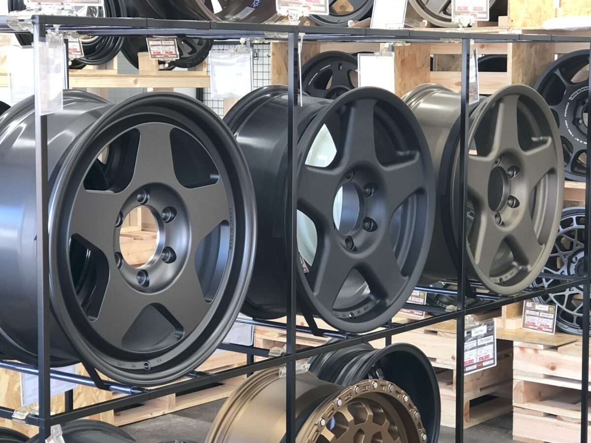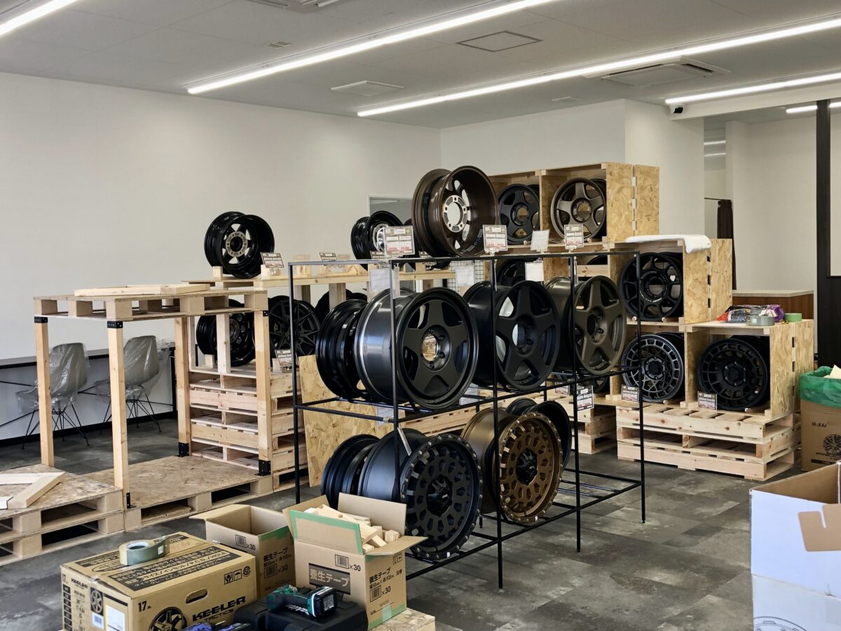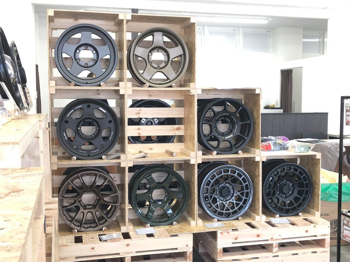 流行りのオフロード系カスタムホイールの展示もあります。