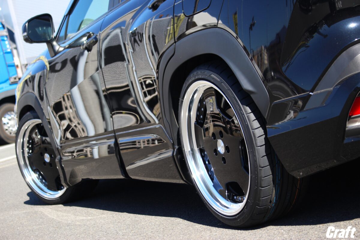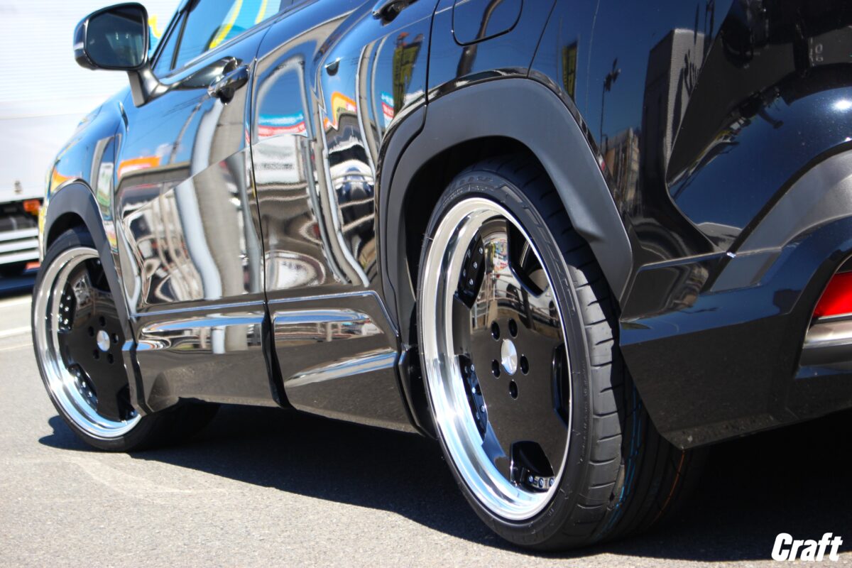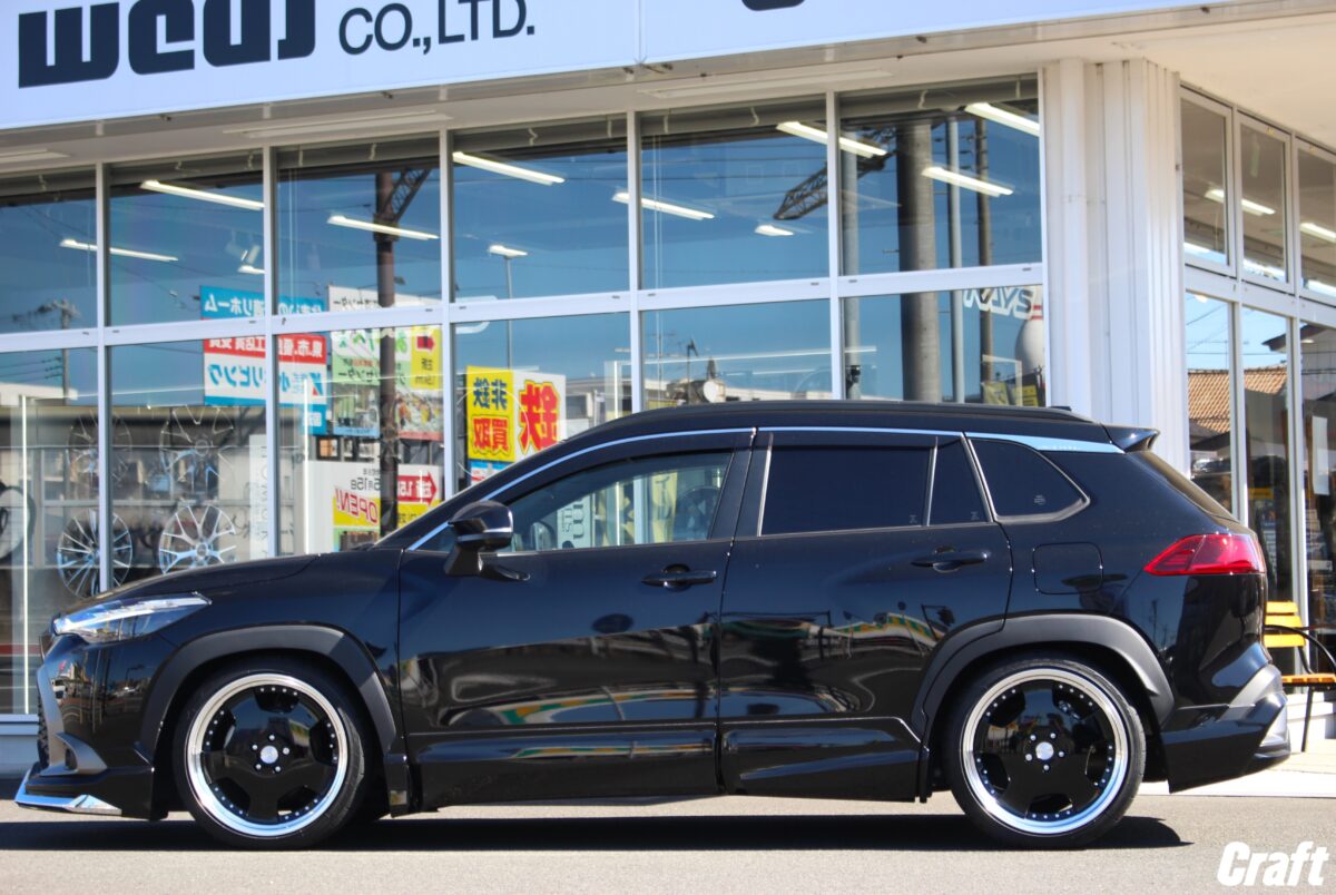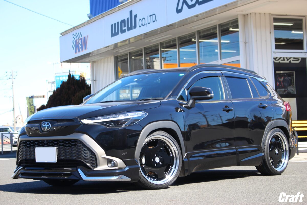 カローラクロスのツライチカスタム。 車高調でローダウンを行い 「 9.5J 20インチ 」 を装着っ✨