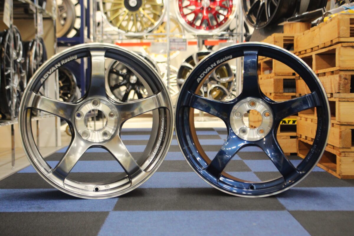 当店でもスポーツカーを中心に人気なアドバンレーシングのTC-4 SE。【左】18in×9 1/2 +45 5-114.3(レーシングハイパーブラック/ダイヤモンドカット)