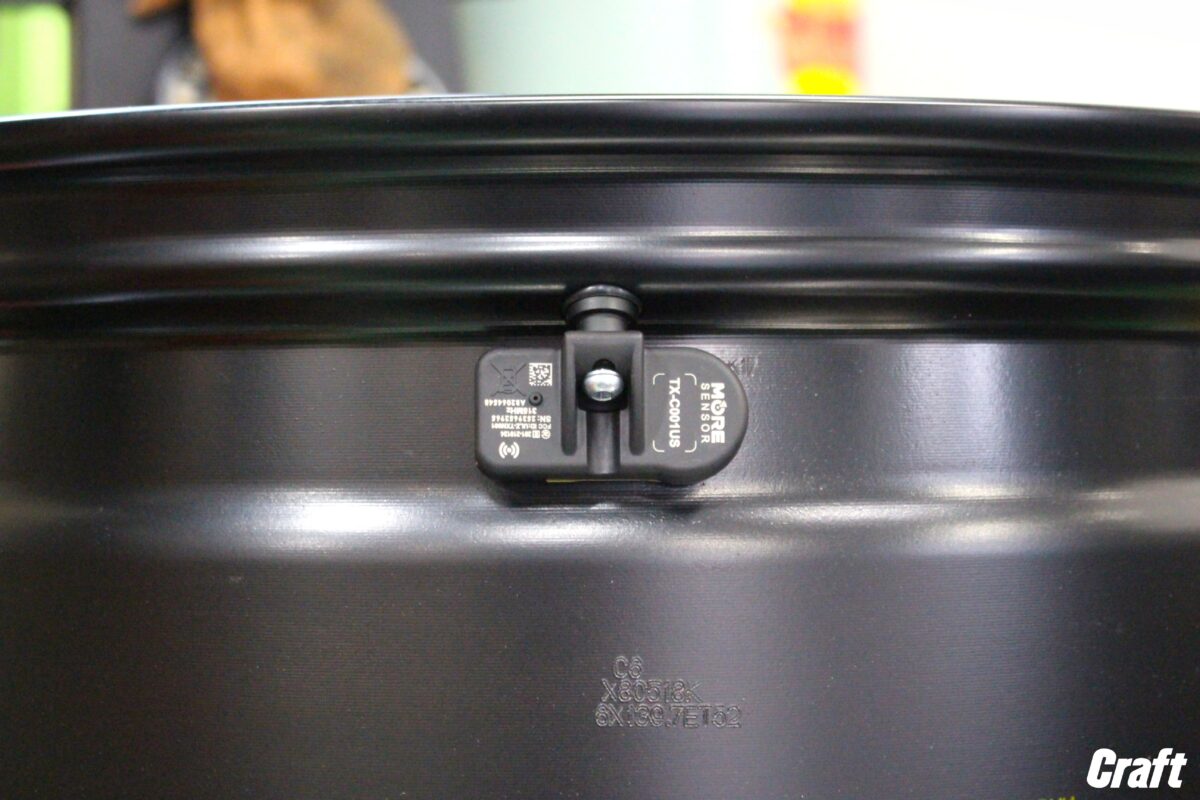 現在装着しているホイールにも純正装着のTPMSが備わっており、その機能をデルタフォースオーバルにも引き継ぐ形で準備を行います。